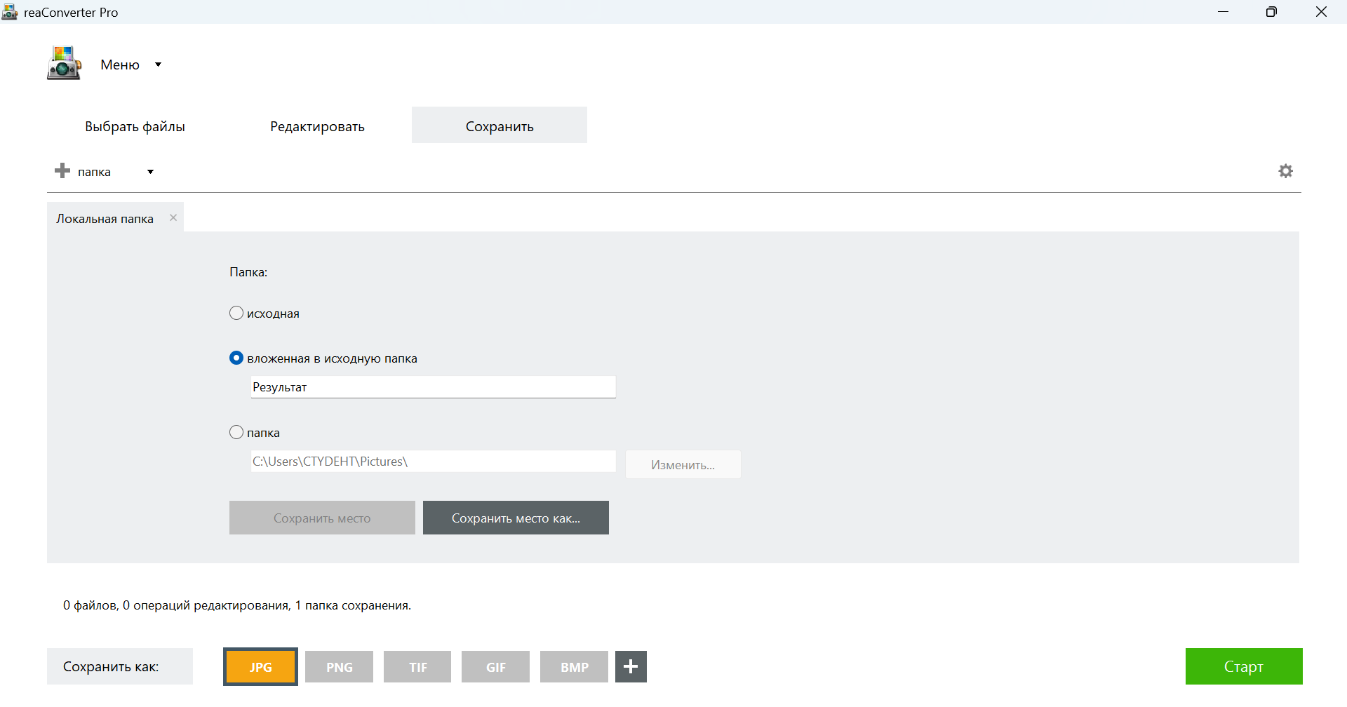 - Позволяет устанавливать выходной каталог, нужное расширение.