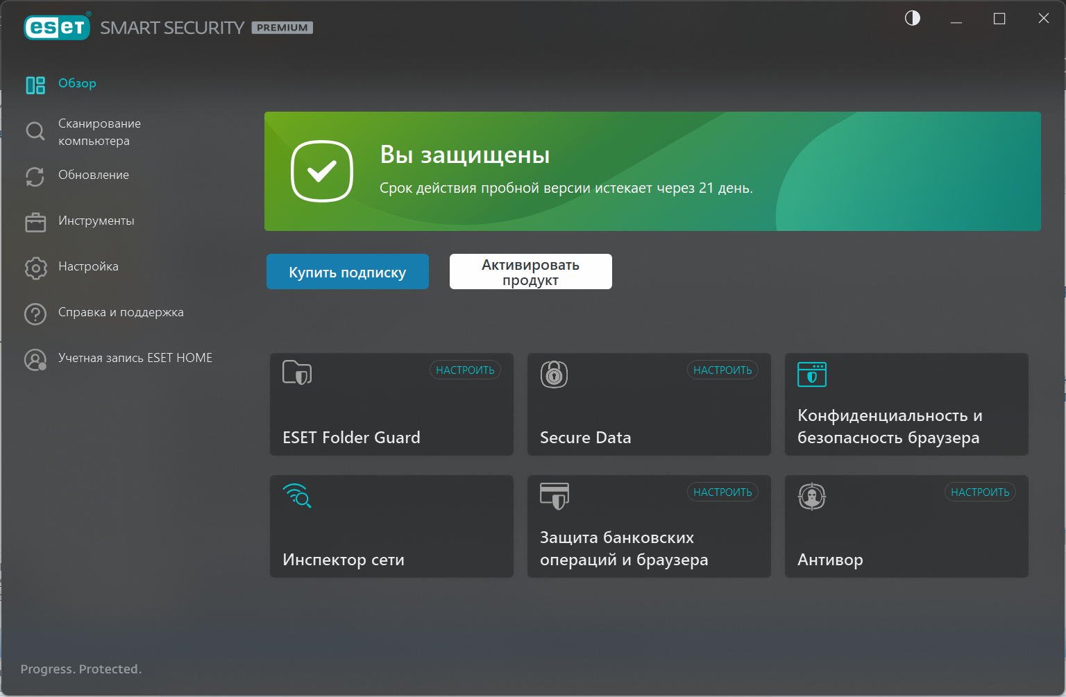- Улучшения доступности: ESET добавила режим высокого контраста, что делает продукт удобнее для пользователей с нарушениями зрения, а также улучшила интерфейс установки.
