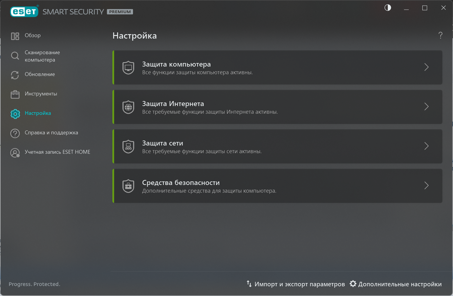 Уровень защиты и все действия и инструменты доступны со всех экранов. В случае любых предупреждений о безопасности решение можно найти одним нажатием мыши. Дополнительные настройки для пользователей