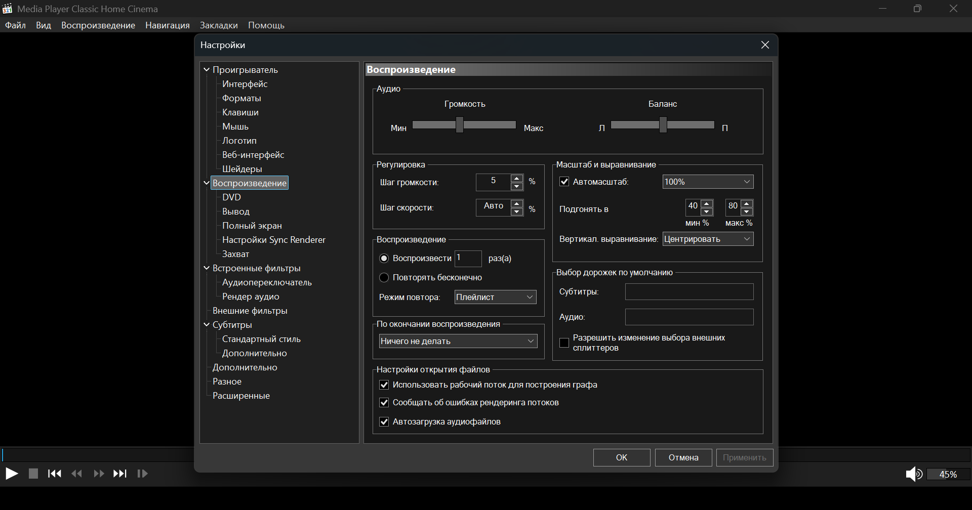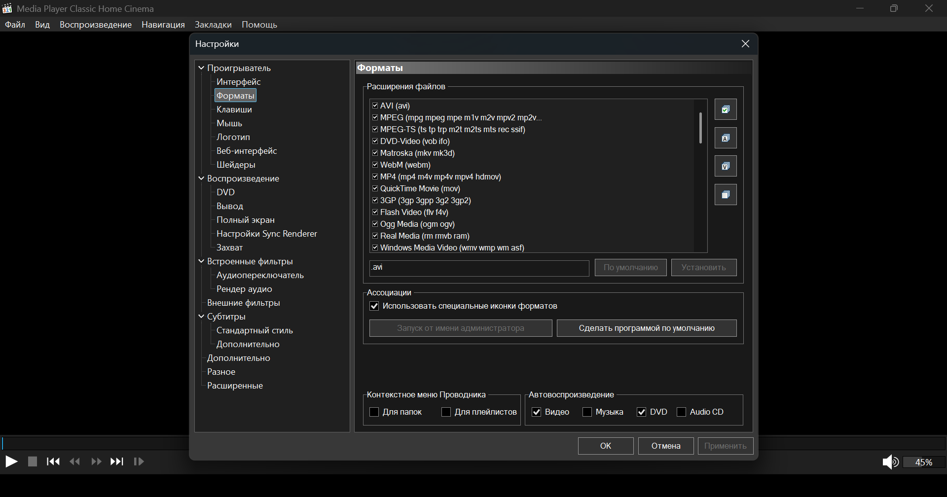 - Воспроизведение Real Media и QuickTime (если в системе установлены соответствующие кодеки)