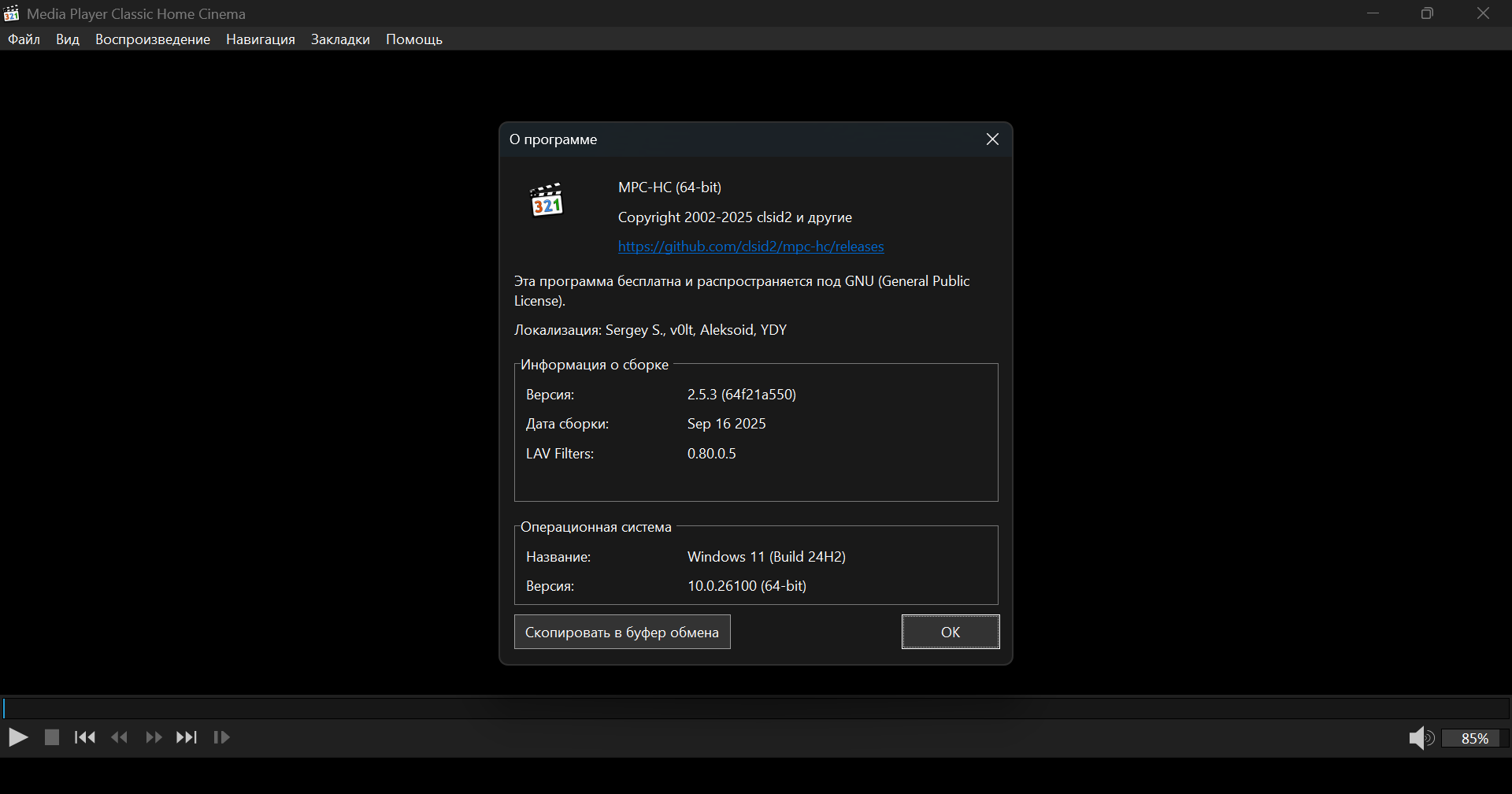 Официальный сайт: mpc-hc project | Unofficial Язык интерфейса: Русский, Английский и другие Лечение: не требуется Системные требования: