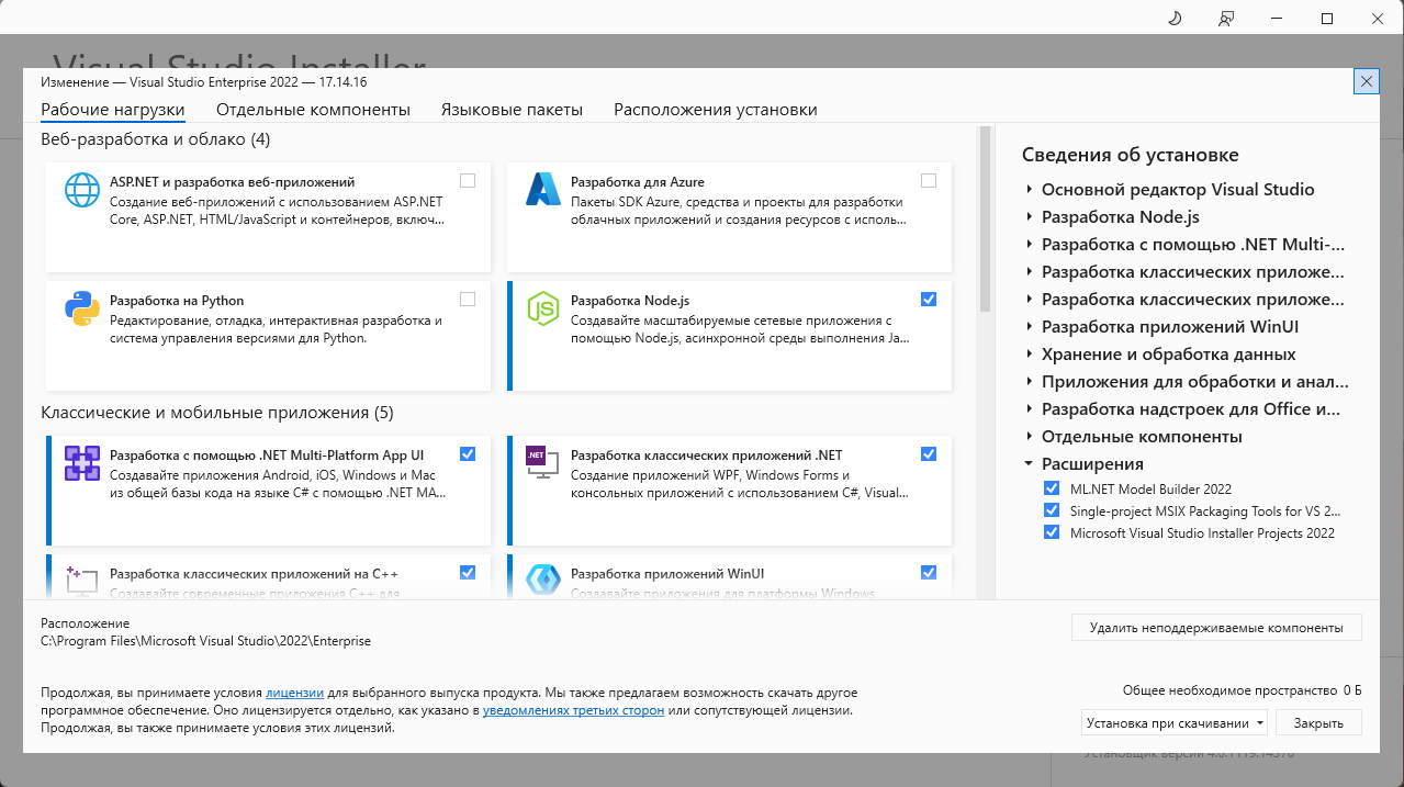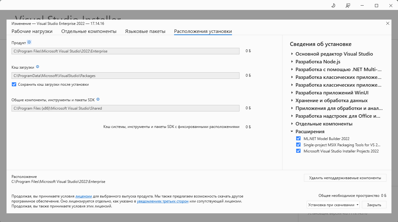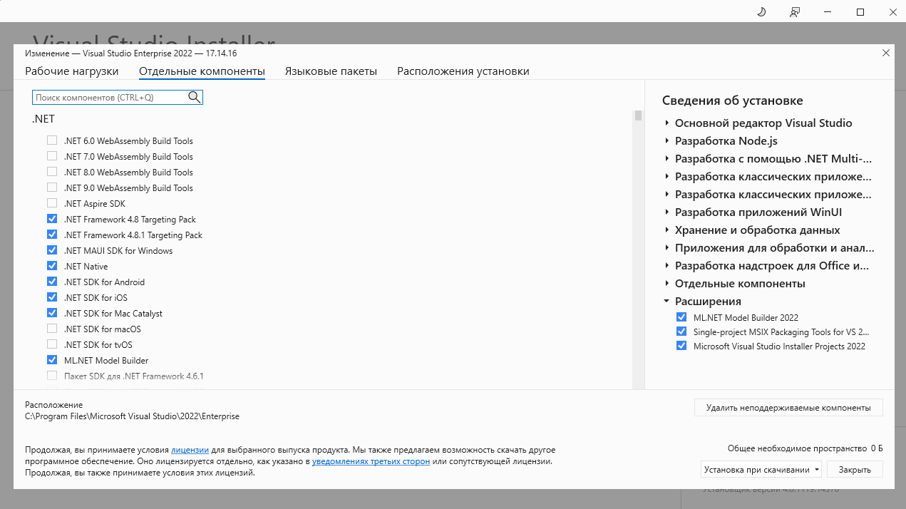 Для работы Visual Studio требуется .NET Framework 4.8. Если .NET Framework 4.8 еще не установлен, он будет установлен во время установки.