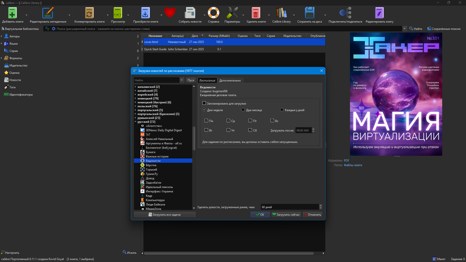 Calibre содержит уже 3 сотни источников новостей. И прочитав мануал, вам не составит труда добавить новые источники