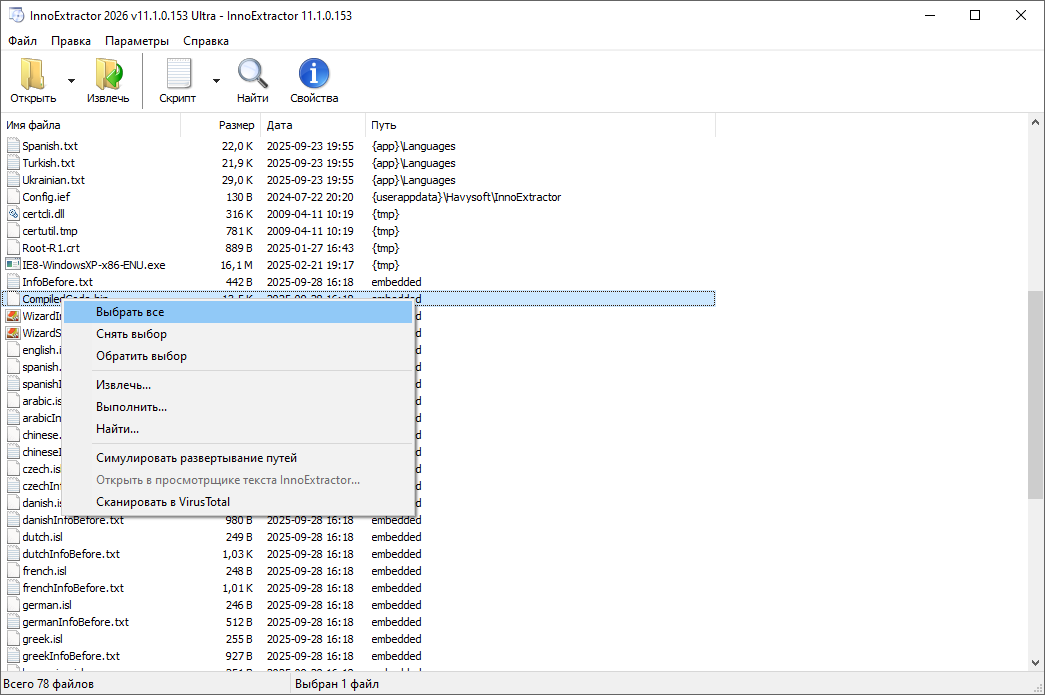 - Извлеченные файлы в папке: InnoExtractor\Documents\InnoExtractor Files