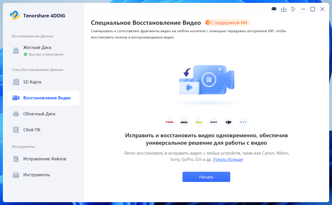 - ИИ Восстановление и исправление видеофайлов с Canon, Sony, DJI, GoPro, смартфонов и т.д.
