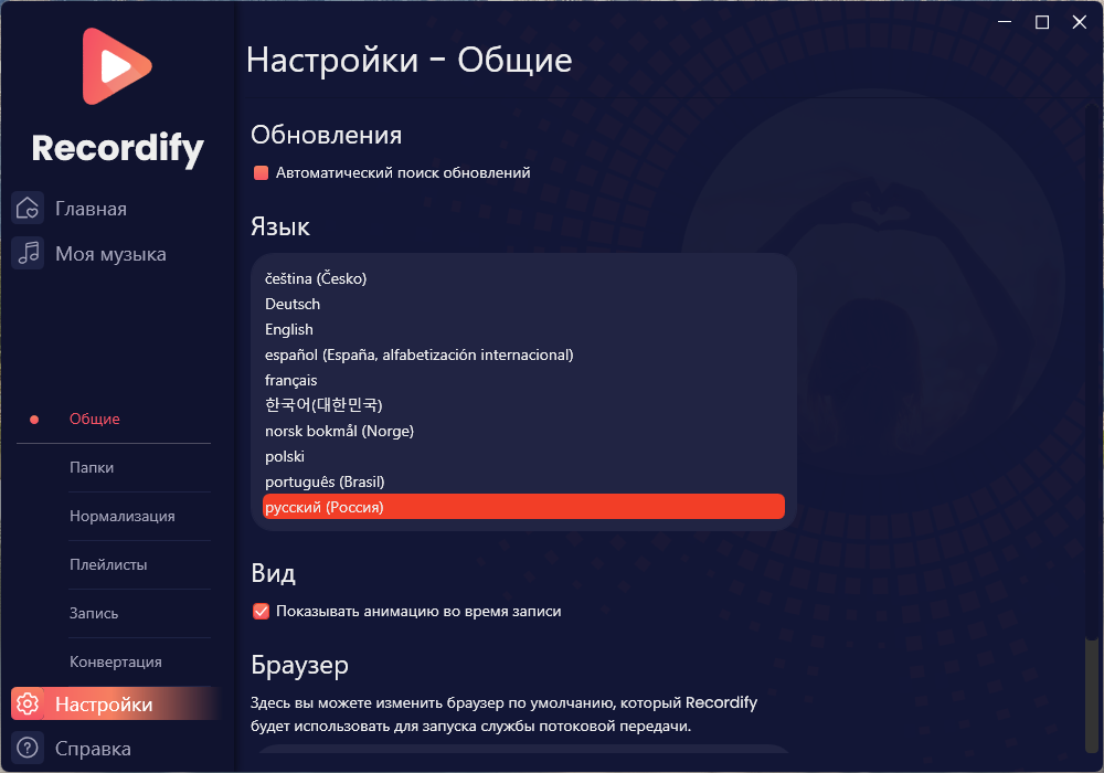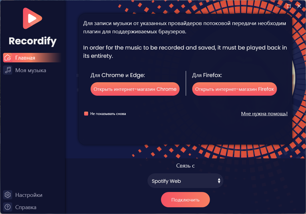 Recordify — этопрограммное обеспечение на базе Windows, которое записывает аудио с потоковых сервисов, таких как Spotify, Amazon Music и YouTube, а также любой звук, воспроизводимый на динамиках вашего ПК, и сохраняет его в виде высококачественных файлов MP3, WAV или FLAC. Он автоматически распознает песни, разделяет их на отдельные треки, добавляет теги ID3 (исполнитель, альбом, название) и может убирать рекламу во время записи, обеспечивая непрерывное воспроизведение музыки.