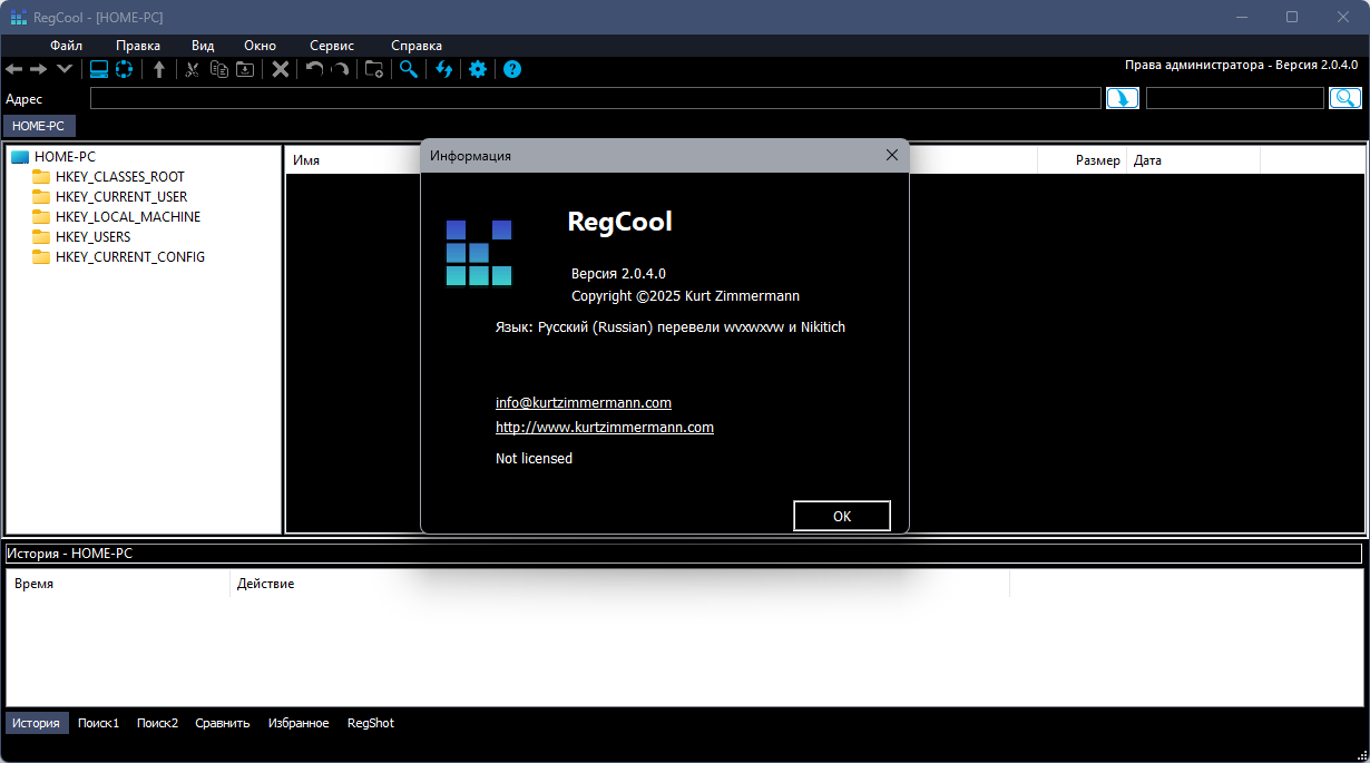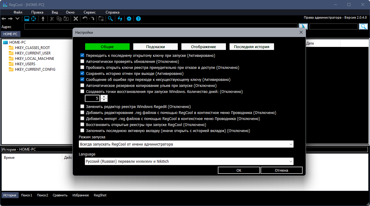 - Функция резервного копирования реестра и последующего восстановления в случае необходимости.