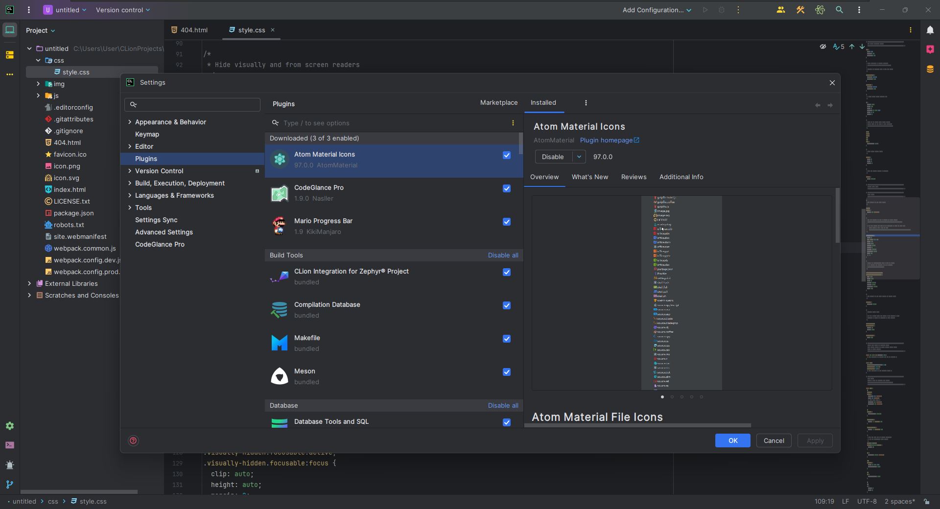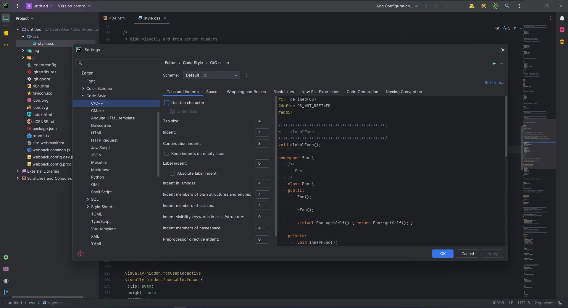 • Помимо поддержки С и С++ (в том числе C++11, libc++ и Boost), CLion также работает с JavaScript, XML, HTML и CSS.