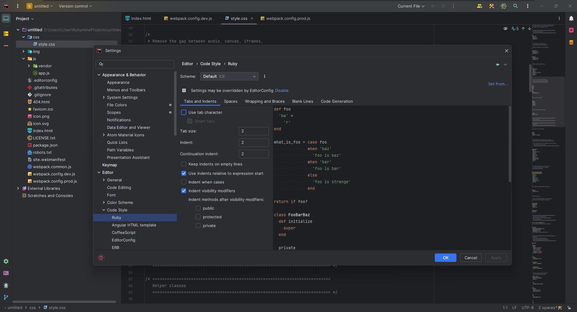 Особенностью RubyMine является то, что для всех перечисленных выше функций учитывается специфика каждого конкретного проекта.