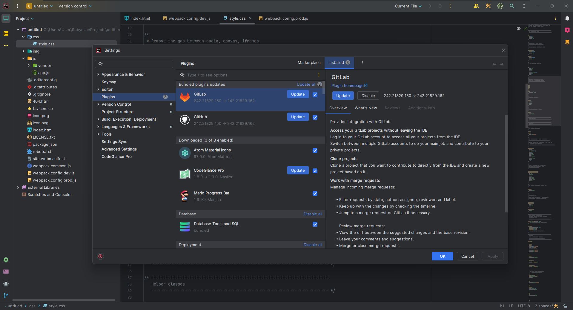 Кроме того, RubyMine позволяет полностью настроить рабочую среду, отвечающую требованиям разработчика, начиная с цветовой схемы, расположения окон, сочетания клавиш быстрого доступа и заканчивая интеграцией с системой контроля версий, базой данных, или настройкой удаленного сервера.