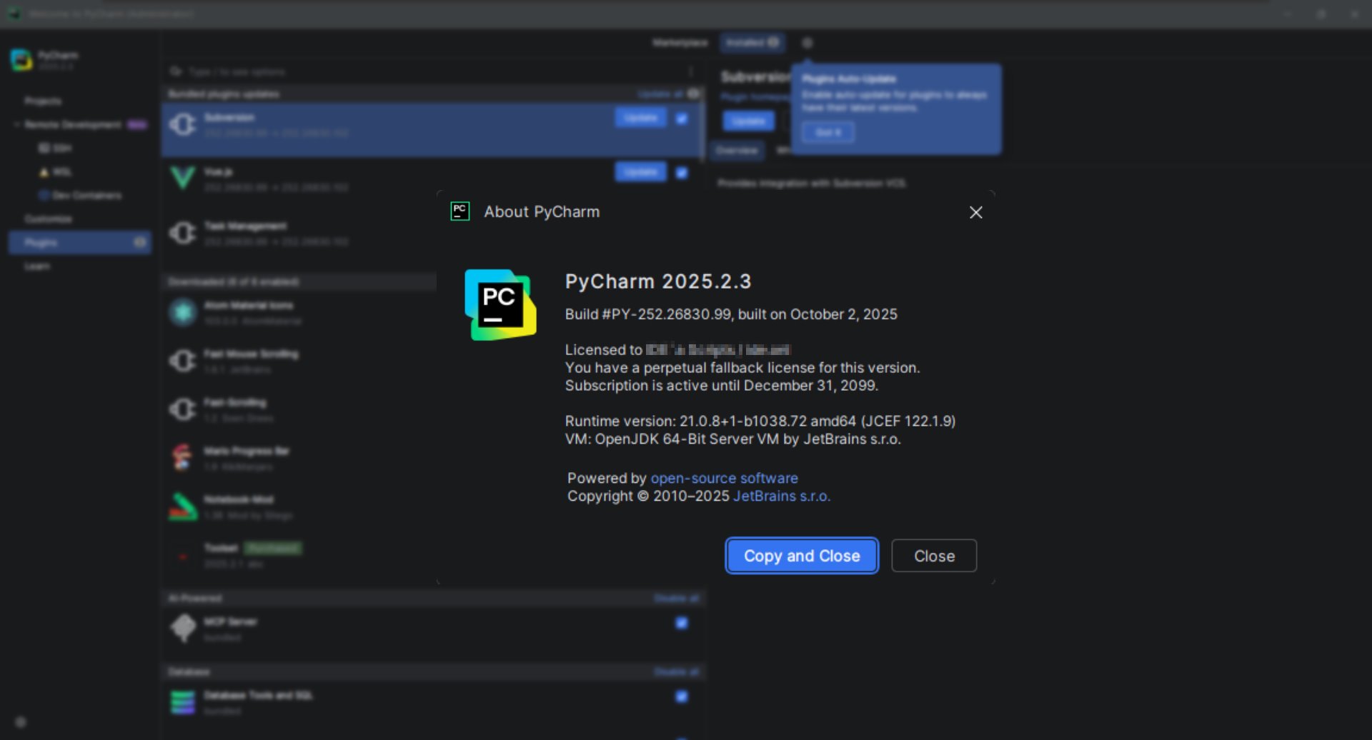 Используется новый активатор до 31 декабря 2099 года. Если у вас есть ещё какие-то IDE от JetBrains, с другими активаторами, придётся обновить все, потому что старые активаторы перестанут работать.
