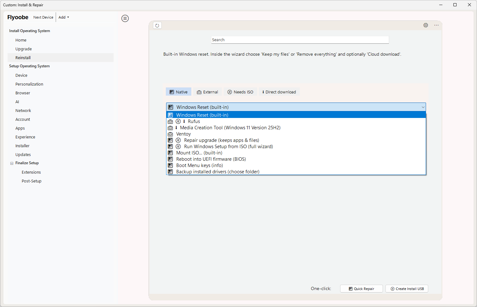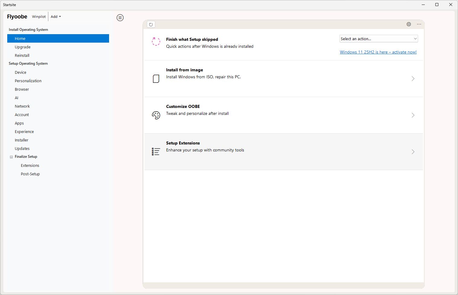 После того как Flyby11 помог тысячам пользователей установить Windows 11 на неподдерживаемое оборудование, стало ясно одно: обход проверок — это только половина дела. Нам действительно нужно было полноценное решение для установки, которое учитывало бы их выбор, а не настройки Microsoft по умолчанию. Поэтому следующим логичным шагом стал Flyoobe.