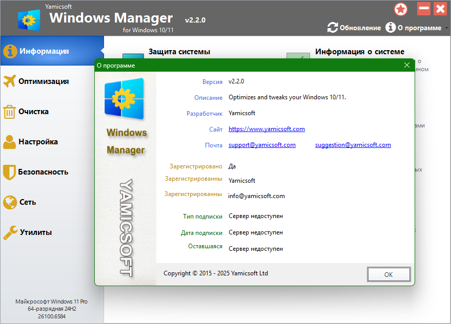 Комплексное решение для оптимизации, настройки, ремонта и очистки Windows 10/11.
