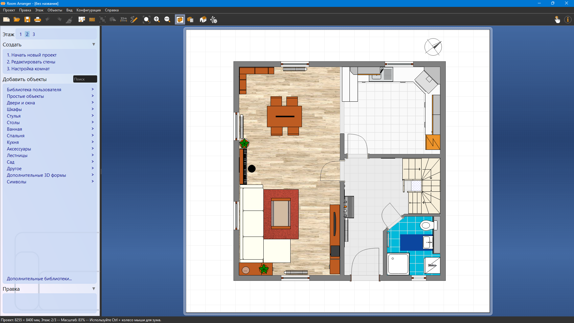 Room Arranger - программа специально предназначенная для создания, разработки, анализа интерьеров или дизайна помещений. Она будет реально полезна и поможет вам, если вы решили перенести стены, сделать перепланировку или простую перестановку и размышляете, что и куда передвинуть. Room Arranger позволяет визуально наглядно передвигать, вращать, менять размеры и цвет, а также самому создавать предметы интерьера, которых еще нет у вас в наличии, но вы хотели бы их иметь. После всех манипуляций можно посмотреть результат в 3D варианте.