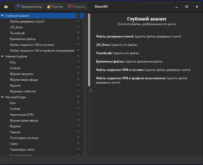 BleachBit – это мощное приложение, предназначенное для тщательной очистки компьютера и удаления ненужных файлов, что помогает освободить место на дисках и удалить конфиденциальные данные.