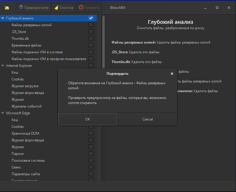 Важным аспектом, заслуживающим упоминания, является то, что BleachBit позволяет предварительно просматривать результаты и выяснять, какой объем дискового пространства будет сохранен после удаления выбранных файлов. Очистка этих элементов легко выполняется простым нажатием кнопки.