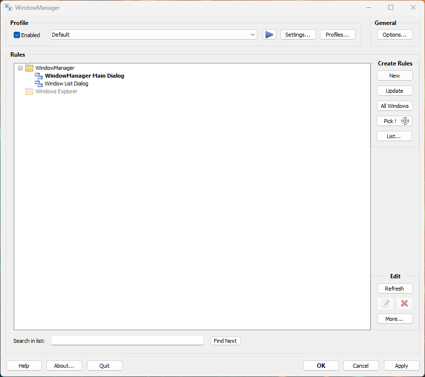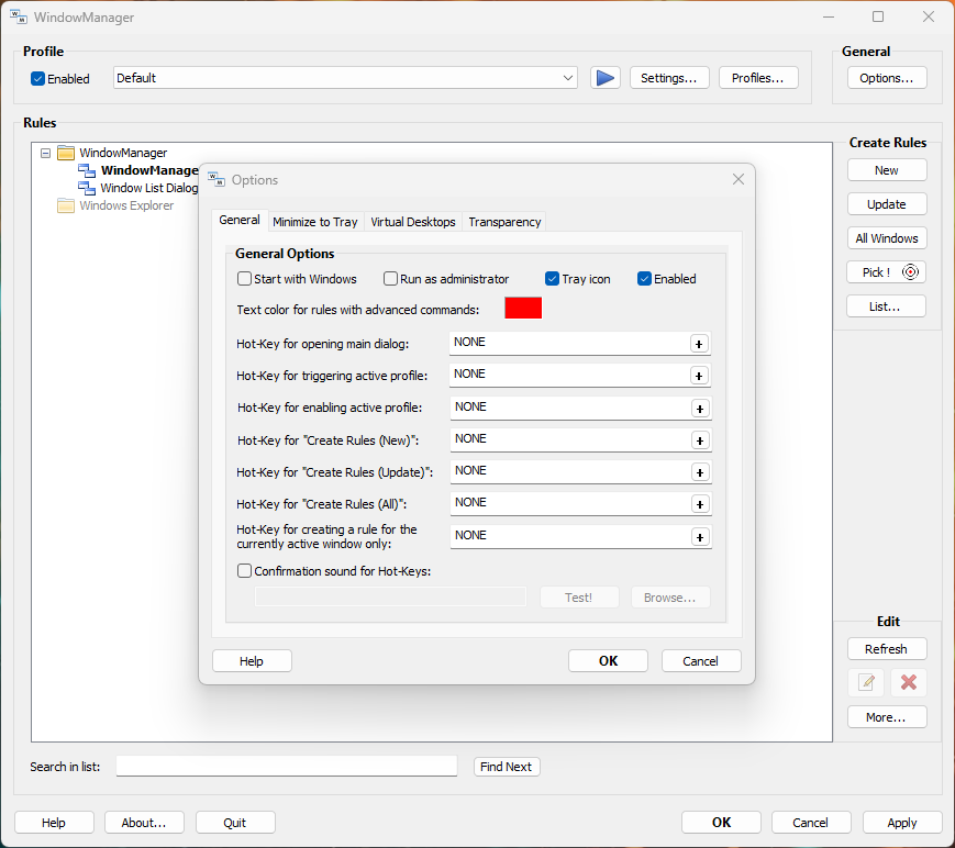 - Настраиваемые правила только для перемещения или изменения размера, активации, закрытия окон и т. д.