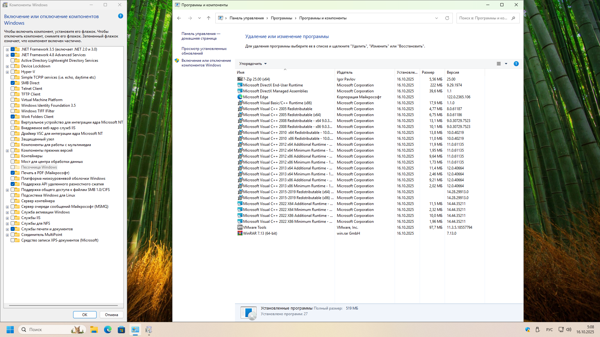 —Включен .Net Framework 3.5 (включая 2.0 и 3.0);