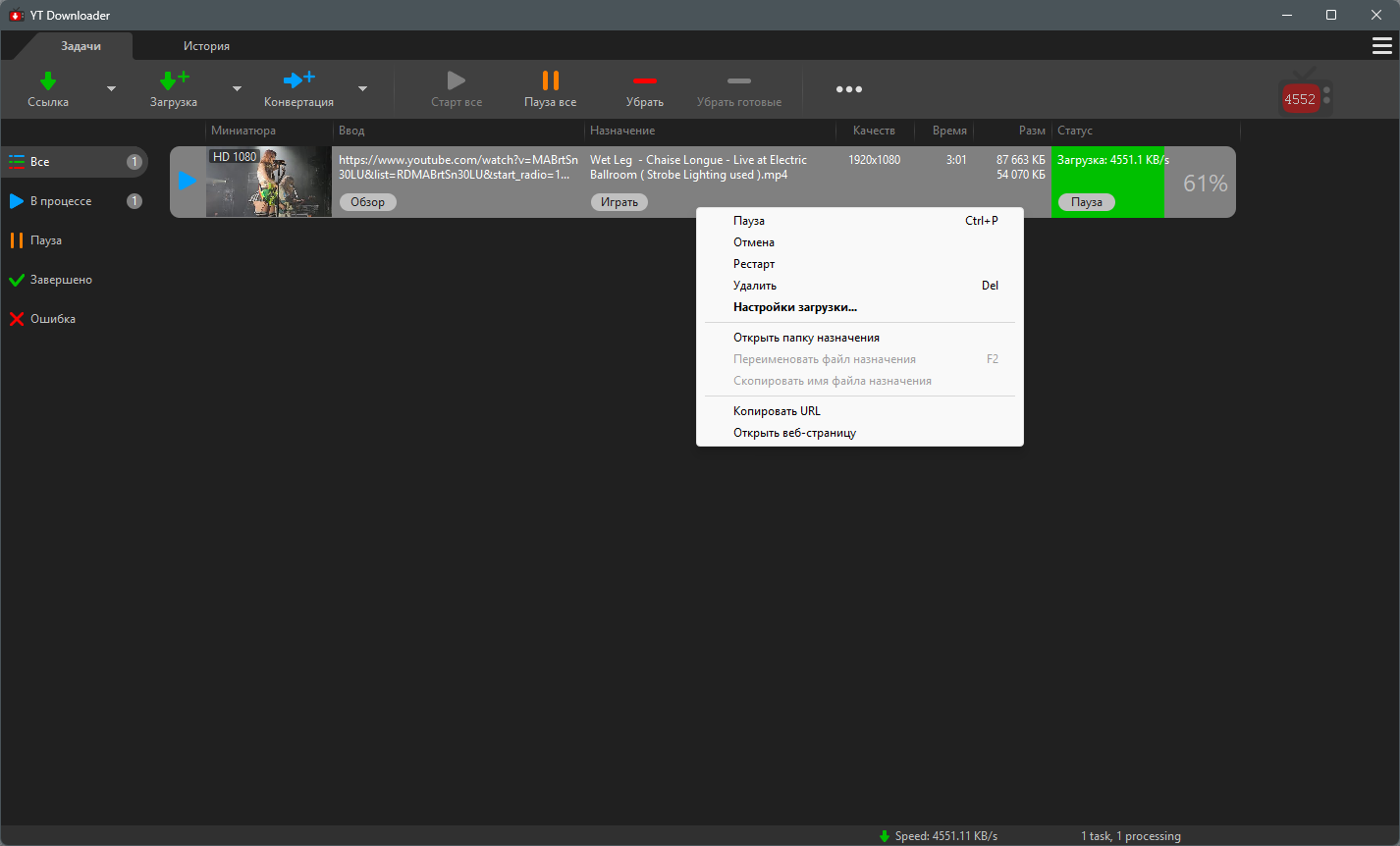 YT Downloader имеет продвинутый механизм ускорения загрузки, который позволяет загружать видео на 500% быстрее, чем обычная скорость.