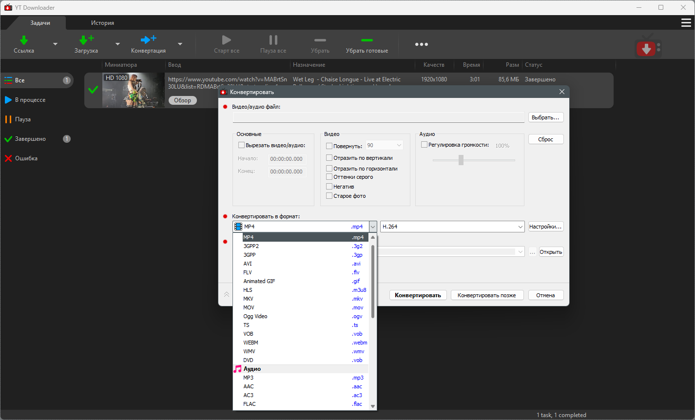 YT Downloader предоставляет готовые пресеты для всех видео-и аудиоформатов. Вы также можете настроить параметры выходного видео/аудио формата.