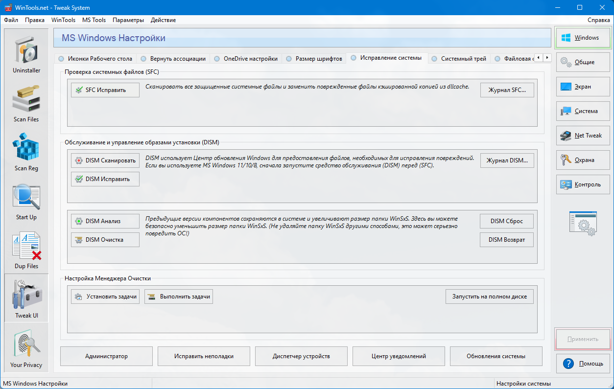 Набор дополнительных настроек и возможностей, влияющих на безопасность, производительность и удобство использования операционной системы и не входящих в стандартную поставку MS Windows. Настройки подразделены на шесть групп, каждые из которых разбиты на подгруппы в целях упрощения навигации: