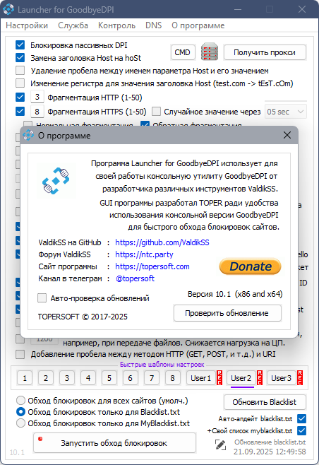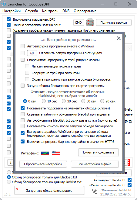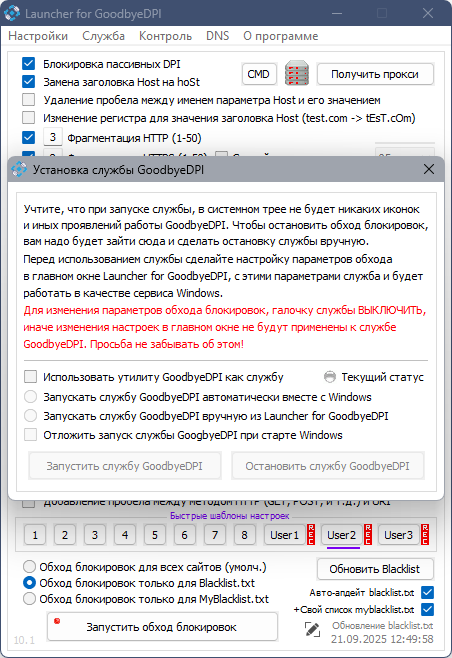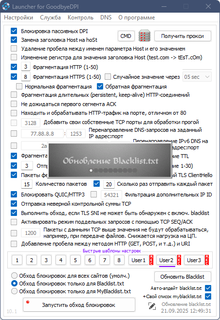 GoodbyeDPI 0.2.3rc3 Launcher 10.1 [Ru/En] - Версия программы: 10.1