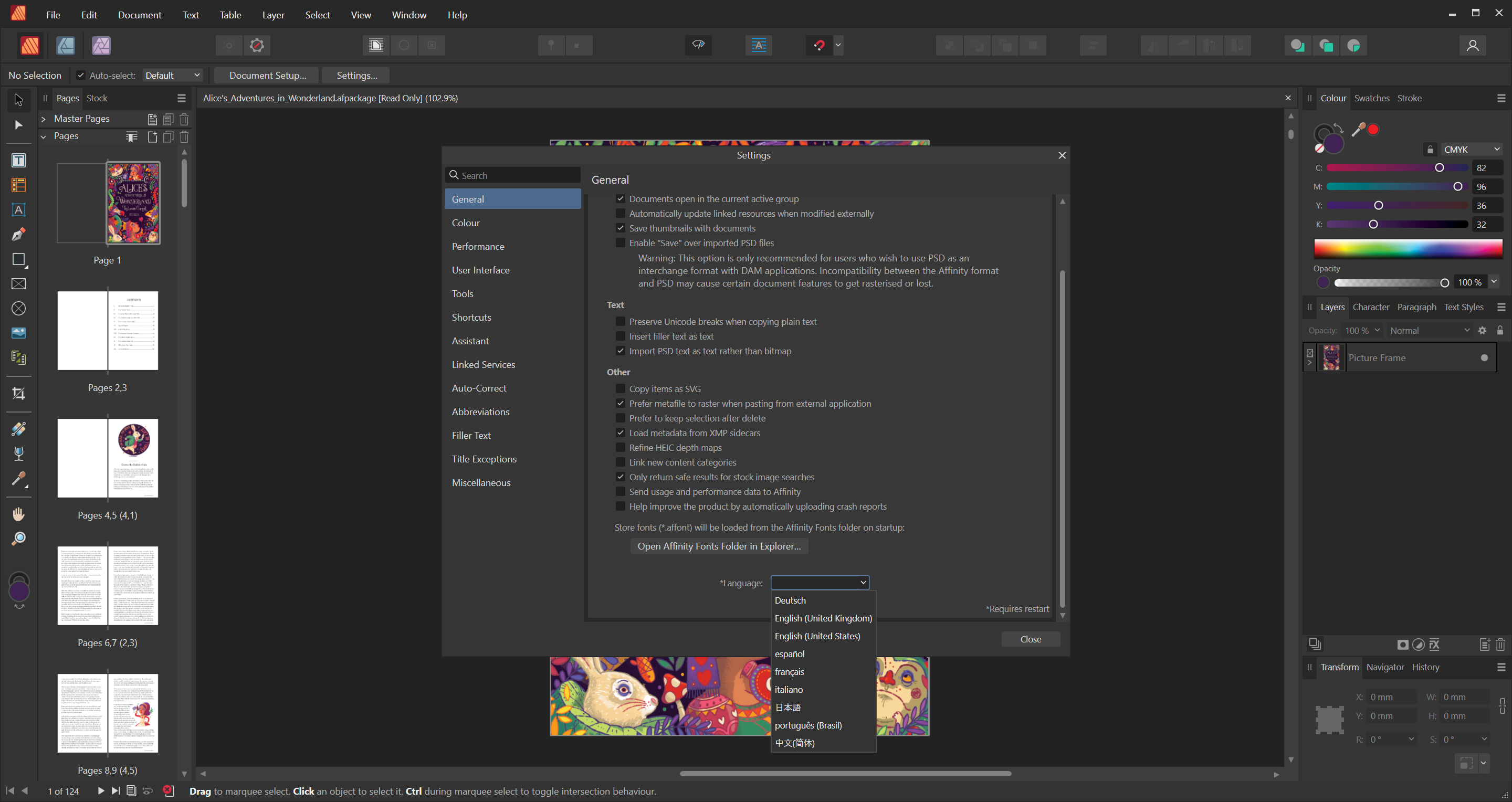 Приложение Affinity Publisher может работать с цветовыми пространствами RGB, LAB, «Оттенки серого» и CMYK, обеспечивая расширенный контроль над профессиональными цветовыми требованиями для печати.- Сквозная цветопередача CMYK.