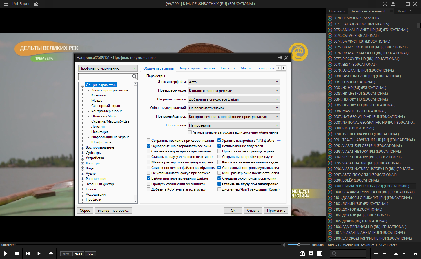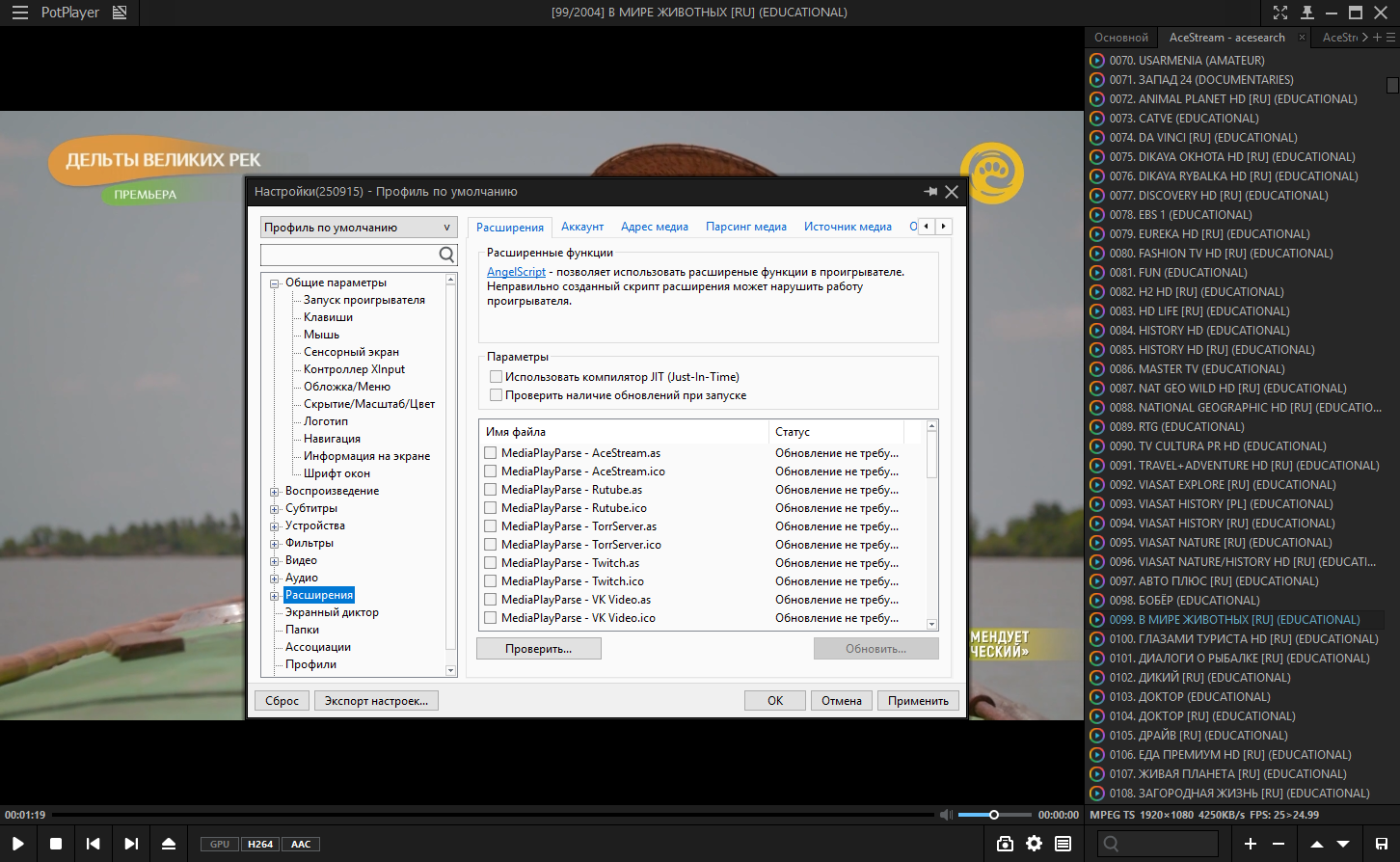 TorrServer MatriX- дополнительно для удобного просмотра по magnet-ссылкам. Копируем в буфер magnet-ссылку (как правило доступна на любом трекере). Запускаем плеер -> Открыть -> Открыть URL-адрес... -> Вставляем ссылку и смотрим **Ace Stream Engine- облегчённая и портативная версия Ace Stream Medias на базе билда 3.1.16 без рекламы и плеера, для просмотра Torrent TV в PotPlayer. Если установлен оригинальный Ace Stream, рекомендуется предварительное удаление. Устанавливается вместе с самообновляемым плейлистом AceStream (1500+ каналов) и Autoit скриптом, который: