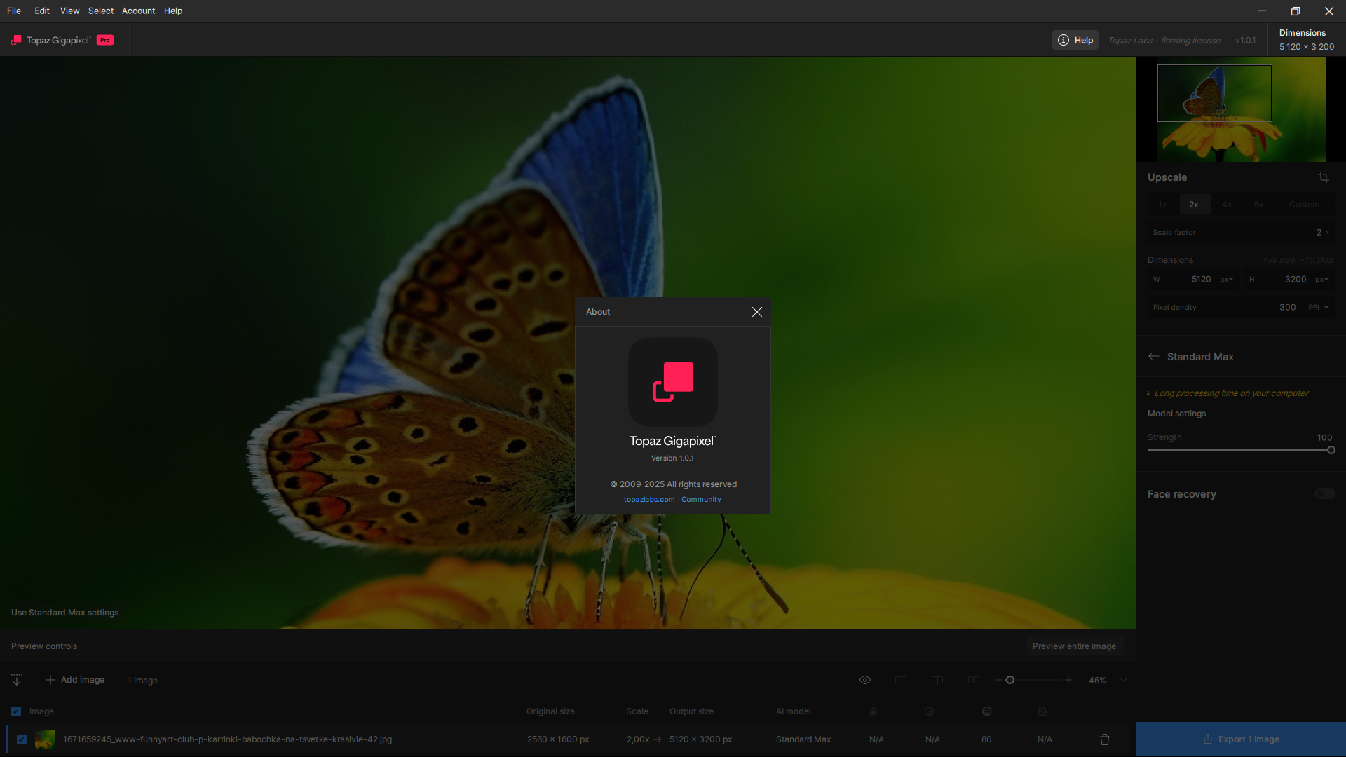 Описание: Topaz Gigapixel – это ведущий в отрасли, ИИ-усилитель изображения, который максимизирует и уровень детализации и точность к оригиналу. Это не просто создание новых пикселей, это создание правильных. Таким образом, ваши изображения будут больше и четче, не теряя деталей, с которых вы начинали.Дополнительные возможности:- Девять инструментов на основе ИИ в Topaz Gigapixel не только делают ваши изображения крупнее, но и более подробными, реальными и ценными.