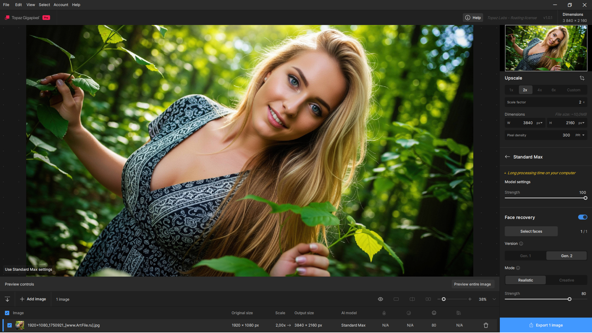 Генеративные модели, отличные от Standard Max требуют 8 GB VRAM Для больших масштабировок, необходимо 24 GB RAM или может быть больше
