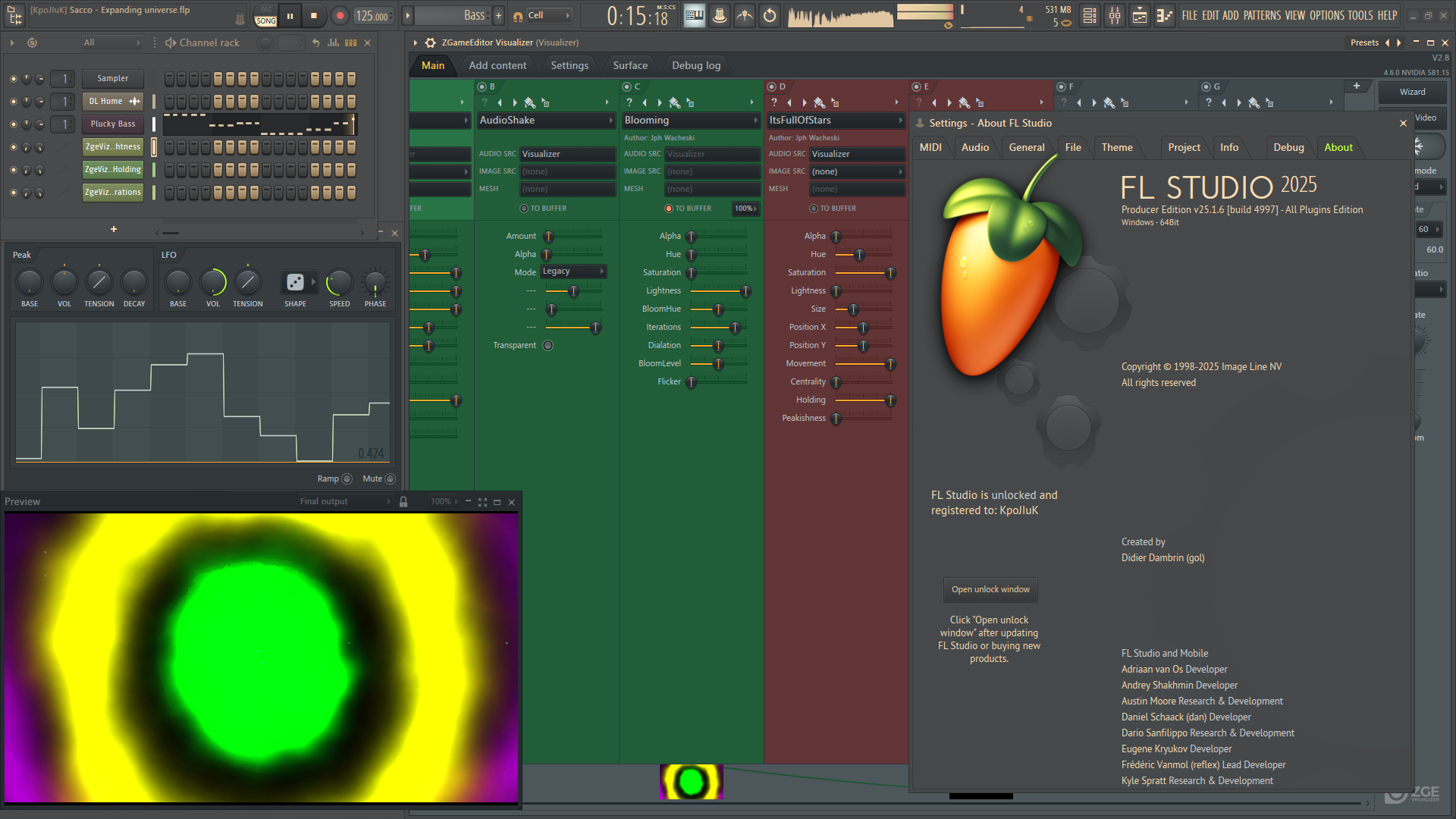 Описание: FL Studio Producer Edition - это одна из лучших программ(DAW) для создания собственной музыки, с её помощью вы можете создавать собственные треки любого стиля. Программа имеет все необходимые функции для работы со звуком : запись, сведение, мастеринг, а также имеет больее ста виртуальных синтезаторов и эффектов.Что нового в FL Studio 2025:Начните свой следующий трек с Loop Starter Новая функция, которая углубляет взаимодействие DAW с FL Cloud. Теперь можно подгружать семпл-паки из облочной библиотеки, не выходя из проекта. Открываете Channel Rack, выбираете жанр и сразу же получаете набор автоматически засинхронизированных лупов, а также уан-шоты, расставленные в секвенсоре. Вуаля, и бит готов! Микшер, который растёт вместе с вашим проектом Вы просили, мы прислушались. Добавляйте или удаляйте треки микшера в соответствии с вашими потребностями. Поддержка до 500 треков — идеально для масштабных проектов и грандиозных идей. Хотите минималистичности? Вы также можете удалить неиспользуемые треки микшера. Знакомьтесь с Gopher, вашим помощником по продакшну Нужна помощь? Просто спросите Gopher на родном языке. Получите мгновенные ответы на вопросы по FL Studio и музыкальному продакшну. Работает на искусственном интеллекте, проходит обучение у экспертов. Emphasis: Громкий, прозрачный Мастеринг-лимитер Увеличьте уровень усиления, не портя микс. Emphasis обеспечивает готовый к релизу мастеринг с простым управлением и кристально чистым звуком. Лучшее из мобильных устройств теперь на ПК Доступ к 7 инструментам и 29 эффектам FL Studio Mobile, включая Minisynth, Wow & Flutter и Tape Stop. Используйте их по отдельности или в различных сочетаниях. Низкая нагрузка на процессор, мощный звук, доступно во всех версиях. Мгновенные басовые линии, соответствующие вашим аккордам Новый режим басовой линии в Chord Progression Tool мгновенно создает басовые грувы, которые можно сочетать с любой прогрессией, и позволяет вашим идеям развиваться. Более быстрое редактирование аудио с расширенными возможностями управления клипами Растягивание, изменение высоты тона и реверс — теперь для каждого клипа. Мгновенно растягивайте, изменяйте высоту тона или реверс любого фрагмента на обновлённой панели свойств клипа. Для доступа к ним просто нажмите Alt или Cmd и дважды щелкните.[youtube]https://youtu.be/nKK0TRFwB7g[/youtube] Особенности RePack'а:Общая информация: Тип: установка Языки: en, de, es, fr, ja, zh Активация: патч WD Дополнительно: темы Параметры командной строки: Тихая установка: /S Например: FL.Studio.v21.1.0.3713.exe /S Версия включает все плагины, входящие в состав All Plugins Edition ВНИМАНИЕ!!!Сохранение проекта в новой версии приведет к невозможности открыть проект или его некорректной работе в предыдущих версиях FL Studio. Имейте в запасе резервную копию проекта, если захотите откатиться на более раннюю версию FL Studio. Скриншоты: