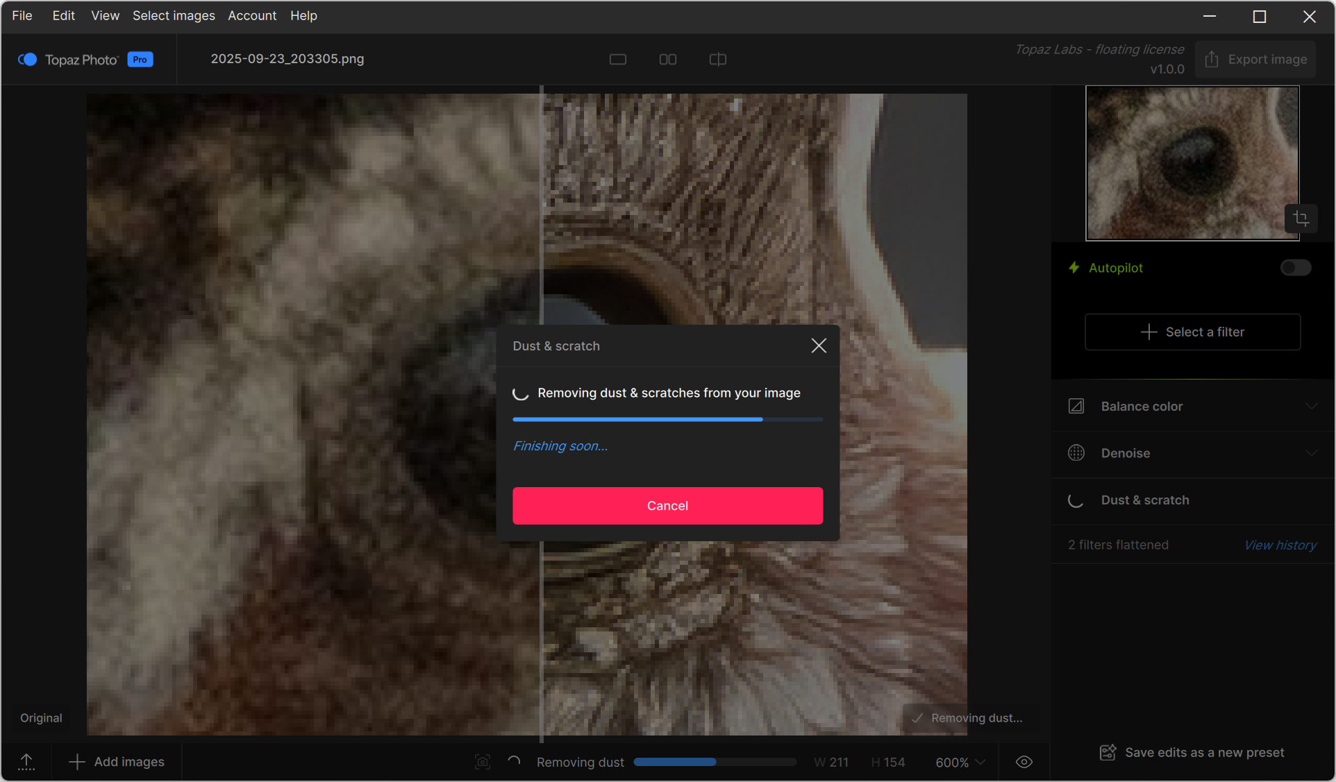 Частная локальная обработка:Ваши файлы никогда не покидают ваш компьютер. Идеально подходит для профессионалов, занимающихся конфиденциальным или собственным материалом, или для тех, кто хочет немного больше конфиденциальности.Неограниченный рендеринг в облачном сервисе:Снижайте напряжение с вашего оборудования с облачным рендерингом. Вы получите самые быстрые сроки обработки с последними моделями ИИ. И все это неограниченно.Используйте Topaz Photo как автономное приложение, или как плагин для вашей любимой программы по редактированию изображений.- Photoshop