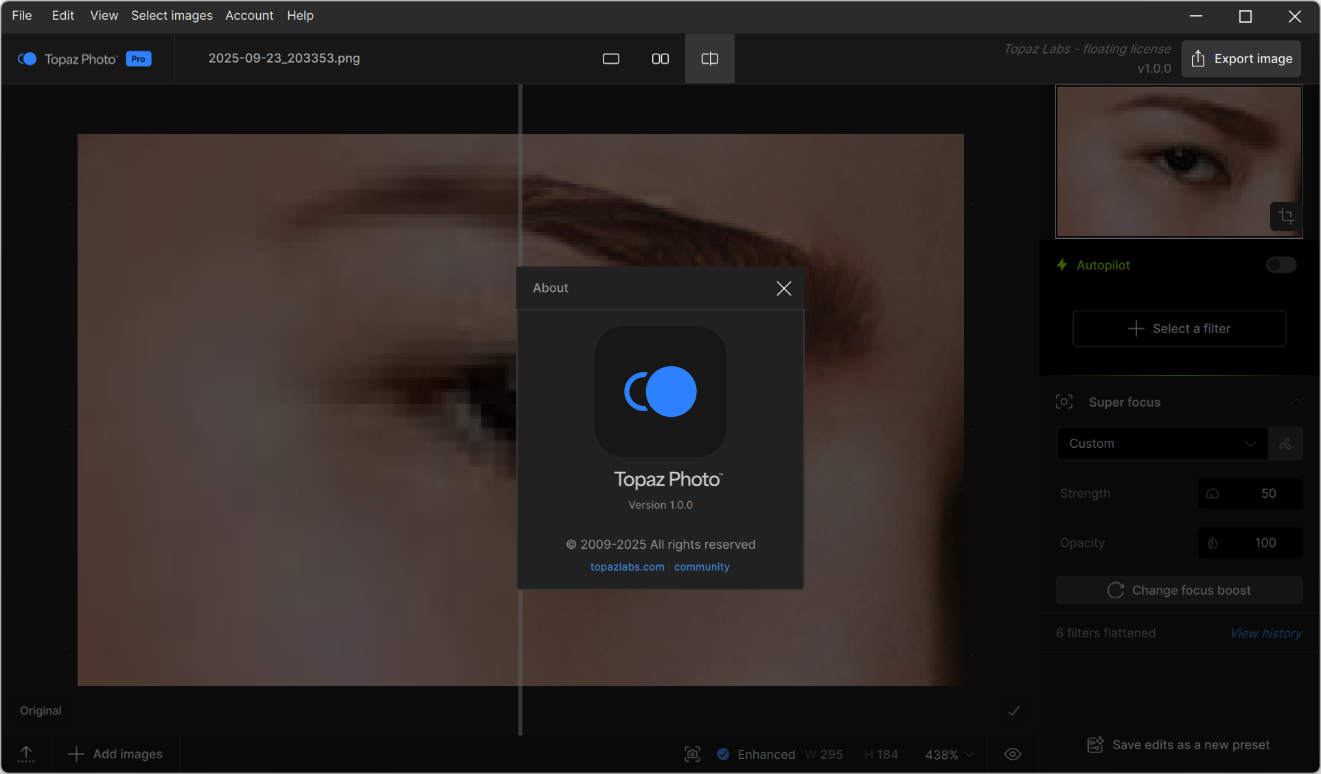 Место на диске C: 37 GB Подключение к интернету (при установке ПО) Описание: Topaz Photo - это интеллектуальное программное обеспечение для улучшения изображения, которое позволяет вам заострить детали, восстановить фокус и регулировать уровни на каждом снимке. Выбирайте из 11 инструментов на основе ИИ для совершенствования своих изображений, или начните Вашу работу при установках по умолчанию (Автопилот).