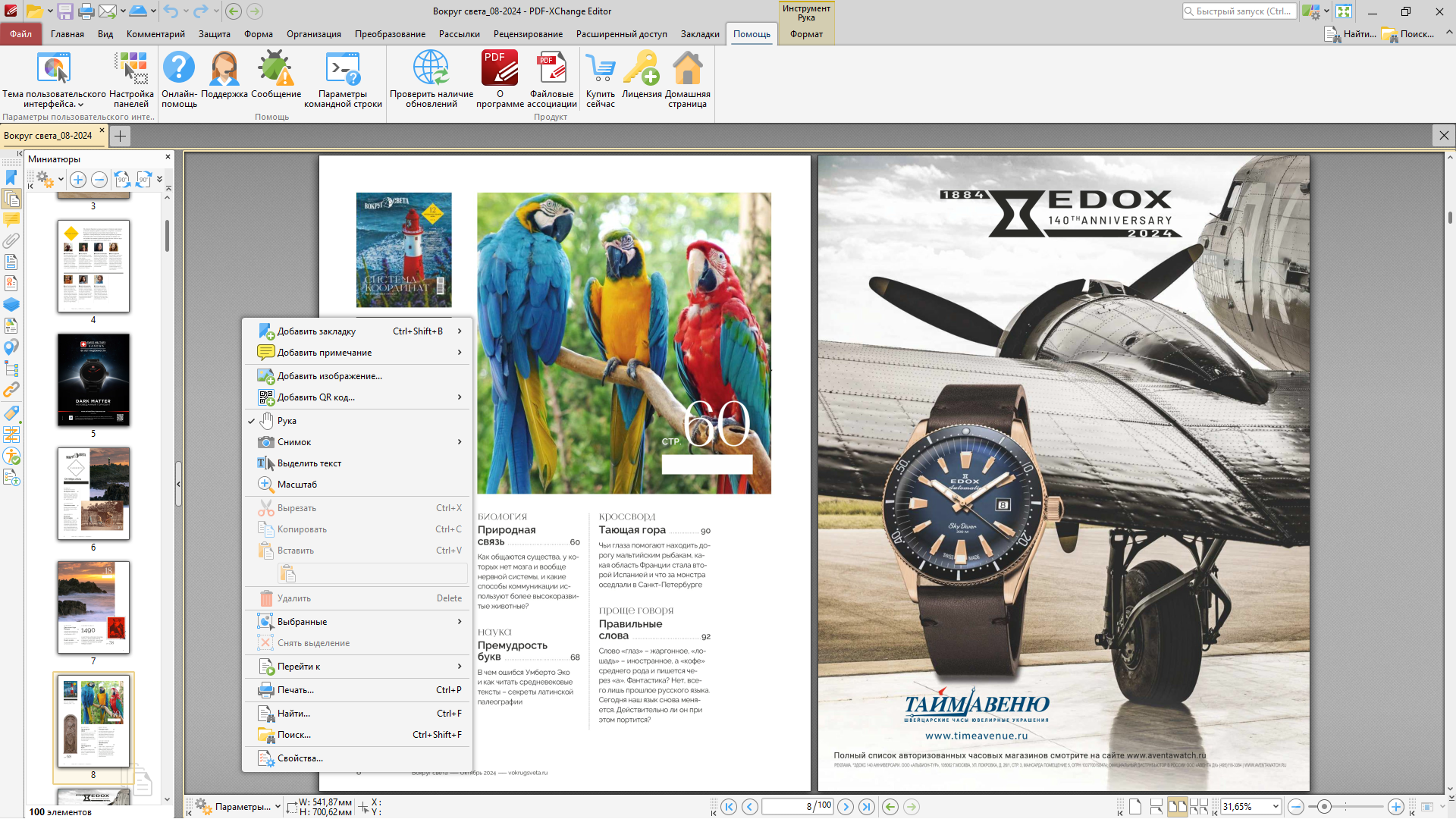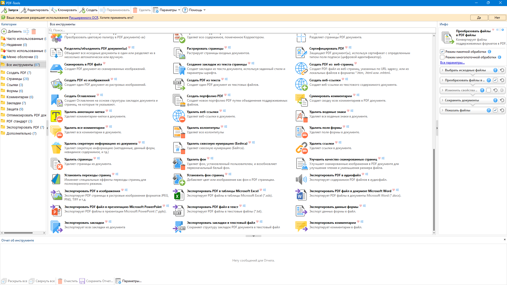 - Экспорт отдельных страниц PDF или целых файлов в растровые изображения