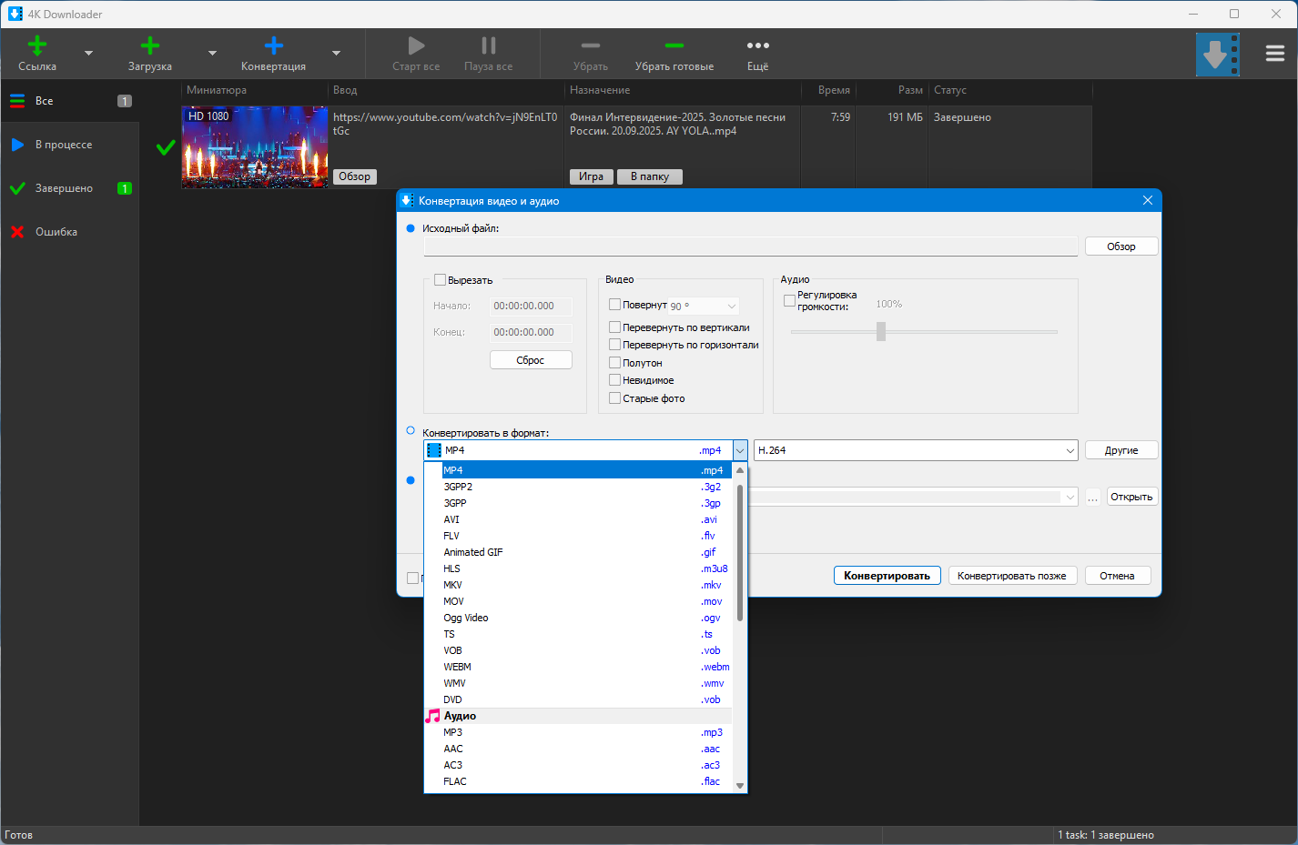 Программа имеет современный и интуитивно понятный интерфейс, который вряд ли доставит вам хлопот. Если вы выбрали видео, которые хотите загрузить, все, что потребуется сделать, это скопировать, поскольку приложение может автоматически вставить URL-адрес. Тем не менее, вы можете указать, хотите ли вы, чтобы загрузка была только аудио, выбрать доступное качество или преобразовать его в Ultra HD. В то же время приложение позволяет вам указать, хотите ли вы сразу загрузить видео или добавить его в список задач, чтобы его можно было захватить позже. Вы будете рады узнать, что вы можете загружать списки воспроизведения и несколько файлов так же просто, как и с одним обычным видео. Включает плеер, а также простую функцию конфертирования видео. После завершения загрузки вы можете сразу же воспроизвести его на любом устройстве по вашему выбору. Кстати, приложение может распознавать сетевые диски, поэтому при необходимости вы можете подключить мобильное устройство. Что касается форматов файлов, приложение позволяет вам захватывать все, от низкого качества 240p до 8K UHD 60 FPS и все остальное, что между ними. Стоит отметить, что вам действительно нужно выбрать формат файла при загрузке, поскольку приложение поставляется с отдельной функцией преобразования, где вы можете обрабатывать видео, когда это вам удобнее.