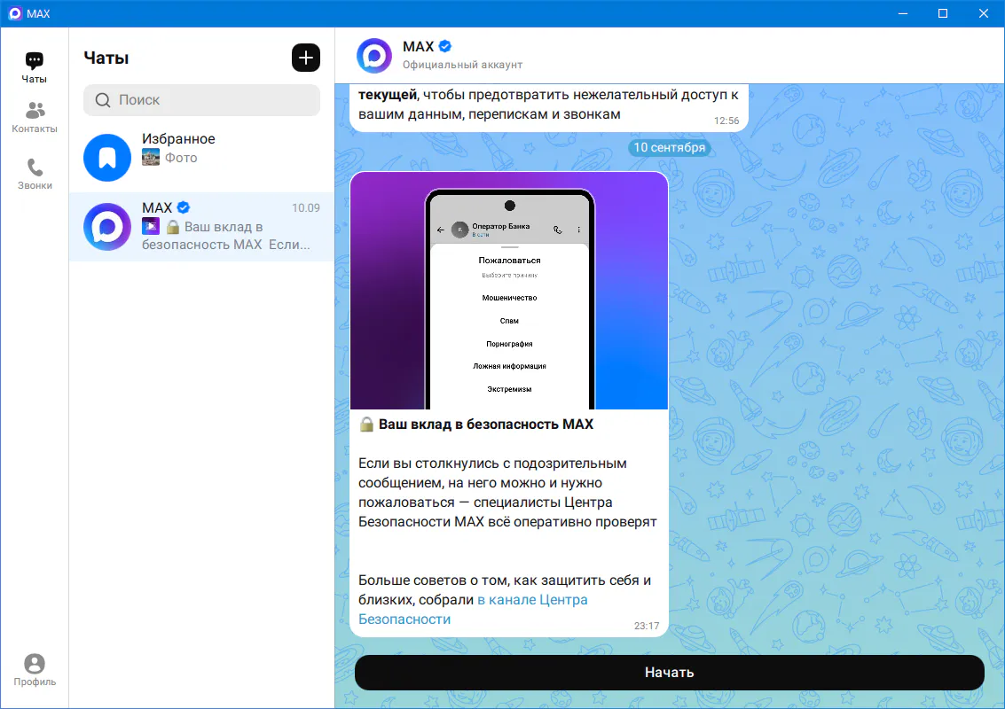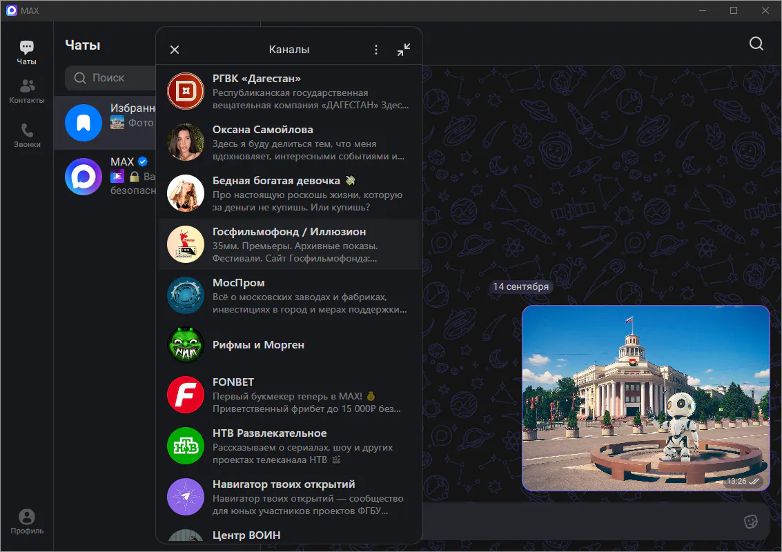 Быстрое и лёгкое приложение для общения и решения повседневных задач. Общайтесь в удовольствие благодаря высокому качеству связи и быстрому соединению даже в сетях со слабым сигналом. Анимированные стикеры, реакции в чатах, возможность отправки файлов до 4 ГБ – все необходимое для того, чтобы делиться настроением и важной информацией. В MAX можно войти сразу с нескольких устройств, используя свой основной номер мобильного телефона. Чаты и звонки будут синхронизироваться между устройствами. Доступна Веб-версия.