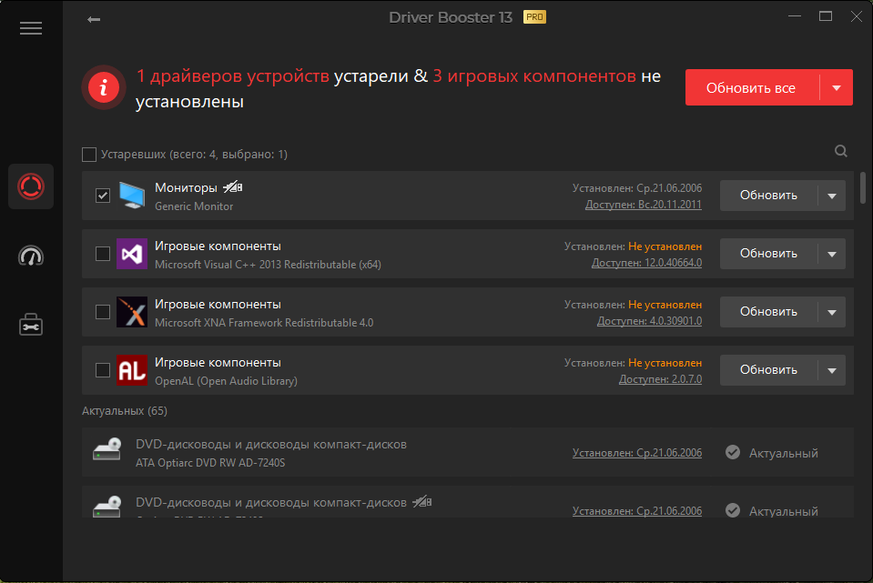 Driver Booster сканирует и определяет устаревшие драйверы автоматически, загружает и устанавливает обновления одним щелчком мыши, экономя Ваше время. Более того, он специально разработан для настройки драйверов для лучшей производительности в играх. Это правильный инструмент для защиты ПК от сбоев оборудования, конфликтов и сбоев системы.