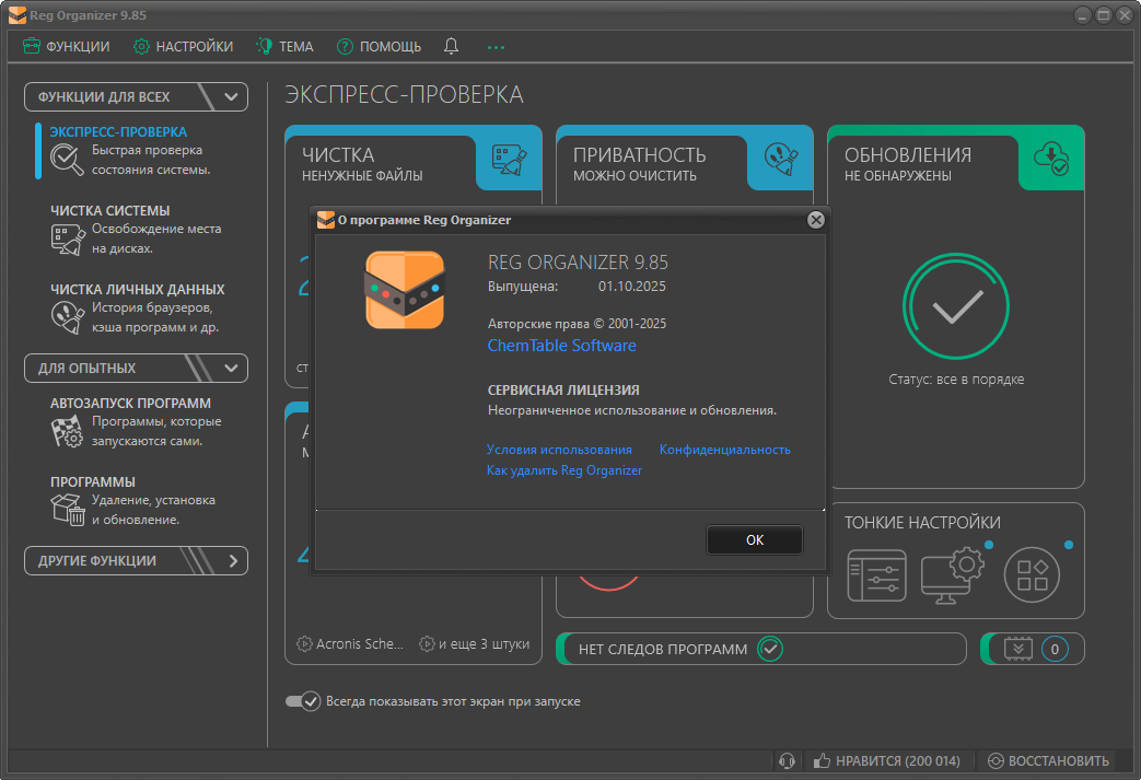 Reg Organizer® - это многофункциональная программа для комплексного обслуживания системного реестра операционных систем Microsoft Windows. Позволяет проводить чистку реестра, его сжатие и дефрагментацию. Имеет мощный редактор системного реестра и расширенную функцию поиска и замены данных. С помощью утилиты Reg Organizer можно осуществлять предварительный просмотр импортируемых reg-файлов (в том числе и из Проводника). Кроме того, позволяет производить полное удаление программного обеспечения (основана на технологии Full Uninstall™), подчищая все "хвосты", которые остаются в системе при обычном удалении.