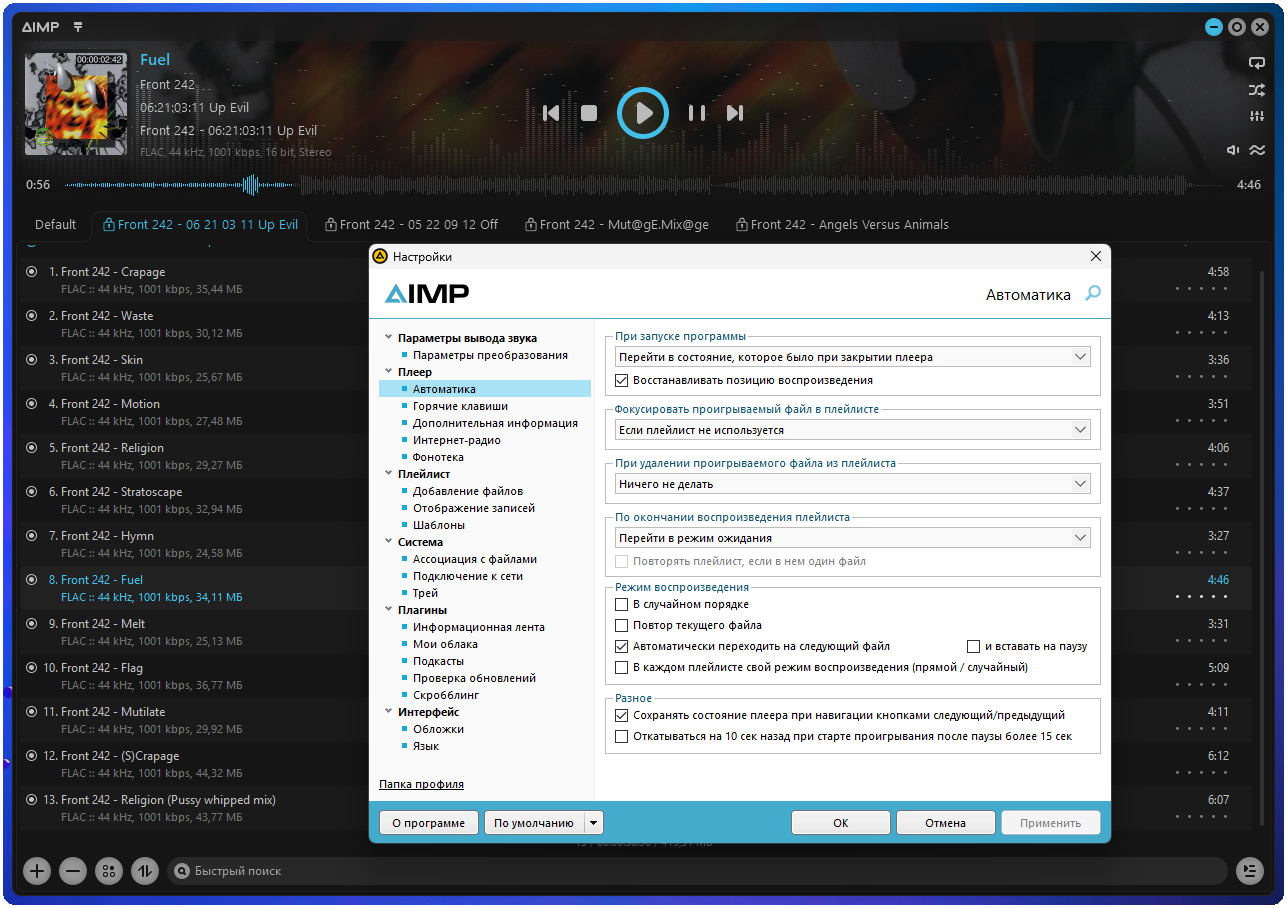 - Плавное нарастание/затухание, кросс-миксинг, пауза между треками