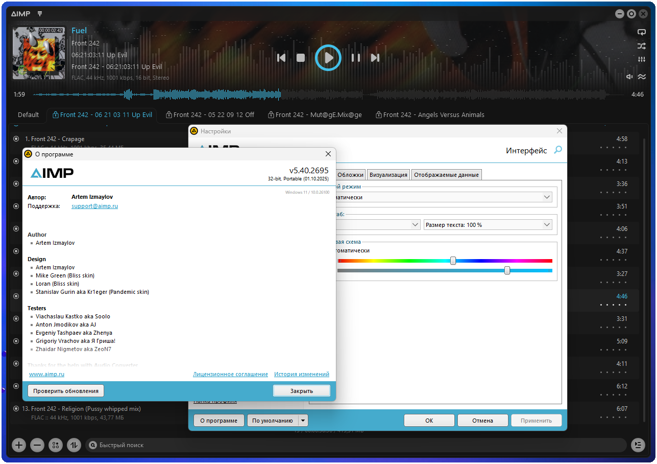 AIMP v5.40.2695 (01.10.2025) = Общее: обновлены локализации