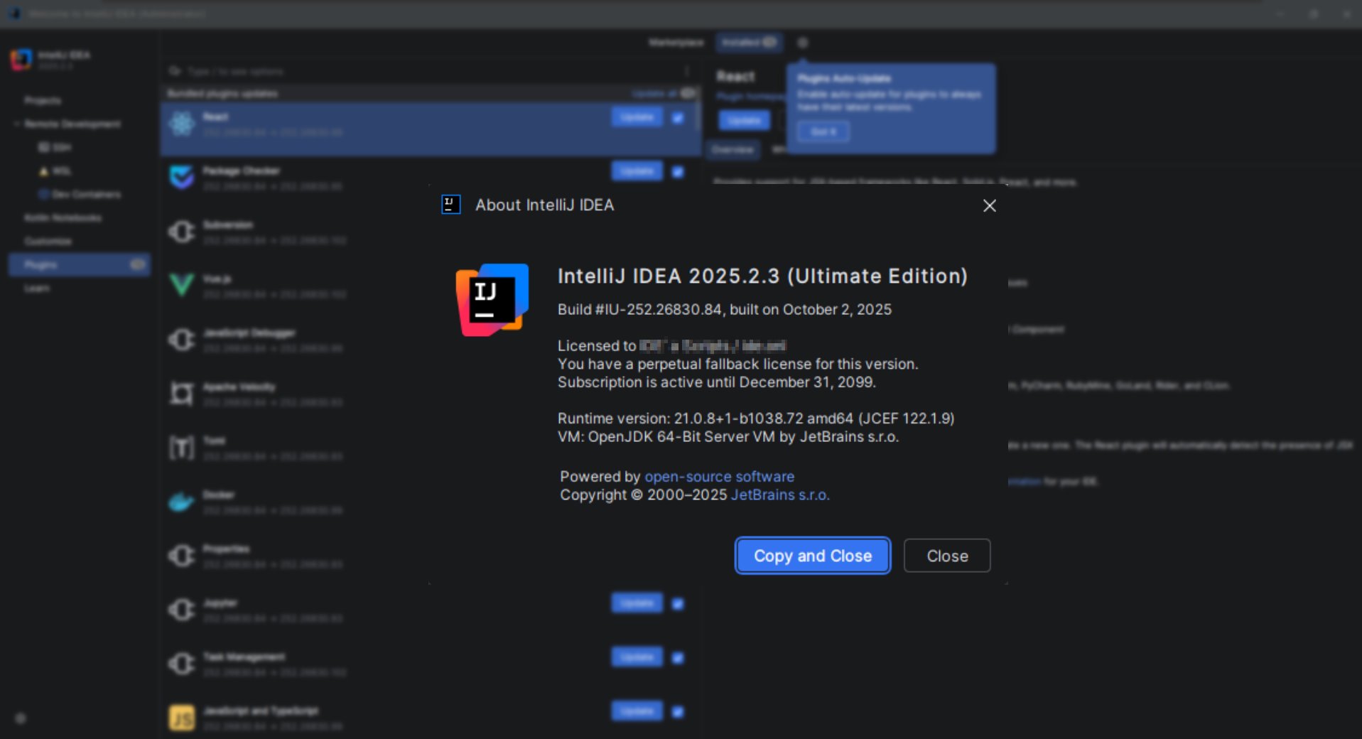 Используется новый активатор до 31 декабря 2099 года. Если у вас есть ещё какие-то IDE от JetBrains, с другими активаторами, придётся обновить все, потому что старые активаторы перестанут работать.