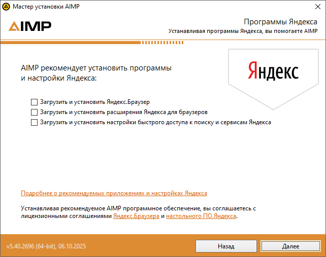 Внимание: Если "подарки" от Яндекса не хотим, снимаем галочки в процессе установки.Скриншоты:
