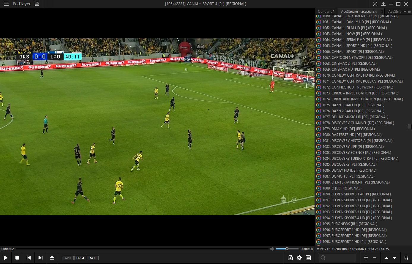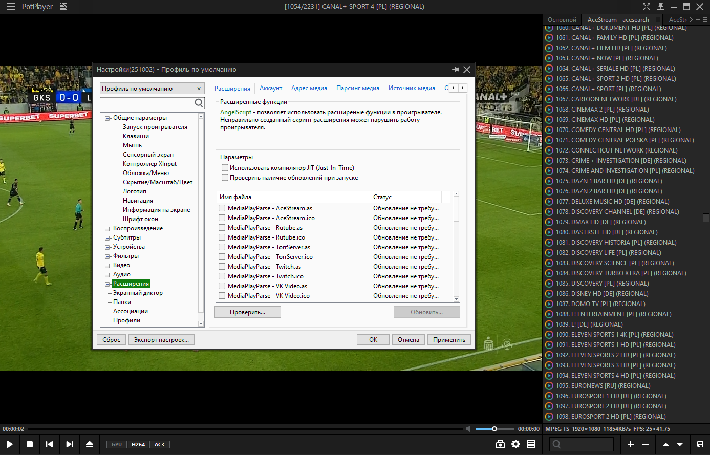 TorrServer MatriX- дополнительно для удобного просмотра по magnet-ссылкам. Копируем в буфер magnet-ссылку (как правило доступна на любом трекере). Запускаем плеер -> Открыть -> Открыть URL-адрес... -> Вставляем ссылку и смотрим **Ace Stream Engine- облегчённая и портативная версия Ace Stream Medias на базе билда 3.1.16 без рекламы и плеера, для просмотра Torrent TV в PotPlayer. Если установлен оригинальный Ace Stream, рекомендуется предварительное удаление. Устанавливается вместе с самообновляемым плейлистом AceStream (1500+ каналов) и Autoit скриптом, который: