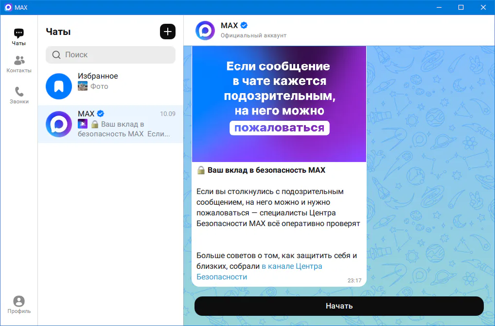Быстрое и лёгкое приложение для общения и решения повседневных задач. Общайтесь в удовольствие благодаря высокому качеству связи и быстрому соединению даже в сетях со слабым сигналом. Анимированные стикеры, реакции в чатах, возможность отправки файлов до 4 ГБ – все необходимое для того, чтобы делиться настроением и важной информацией. В MAX можно войти сразу с нескольких устройств, используя свой основной номер мобильного телефона. Чаты и звонки будут синхронизироваться между устройствами. Доступна Веб-версия.