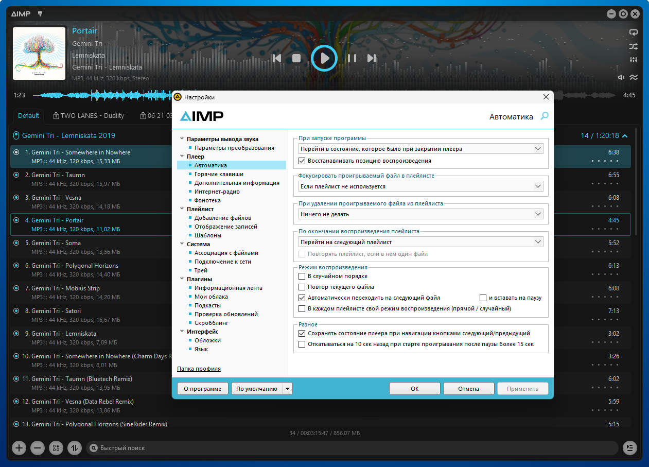 AIMP – проигрыватель, включающий в себя множество дополнительных модулей: CD-Ripper, Tag Editor, Audio-player, аудио конвертер, запись аудио и дисков с данными и т.д. Воспроизводит множество аудиоформатов, включая WAV, MP3, MP2, MP1, OGG, WMA, UMX, не нуждаясь в дополнительных кодеках. Имеет стильный многоязычный интерфейс.