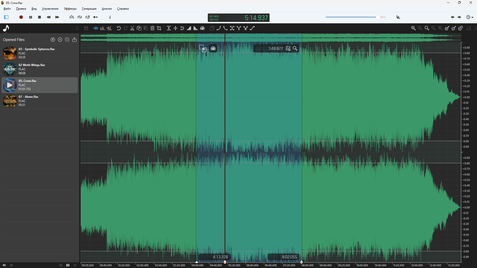 - С ocenaudio, нет ограничений на длину или количество аудио файлов, которые вы можете редактировать. С помощью продвинутой системы управления памятью, приложение держит все файлы открытыми, не позволяя выгружать их из памяти компьютера. Даже с многочасовыми файлами простые операции редактирования, копирования, вырезания или вставки происходят почти мгновенно. Попробуйте и вы будете поражены!