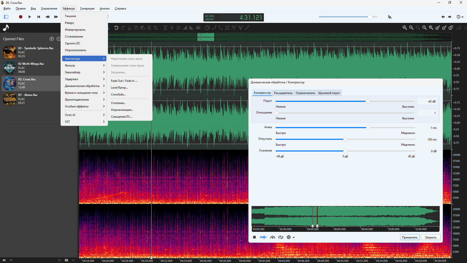 - Применение эффектов, таких как эквалайзер, усиление и фильтрация является важной частью редактирования аудио. Однако, очень сложно получить желаемый результат, используя опции и не слыша результата. Чтобы облегчить настройку звуковых эффектов в ocenaudio есть функция предварительного прослушивания в режиме реального времени, вы слушаете обработанный сигнал при настройке и можете тут же изменить или отменить эффект.