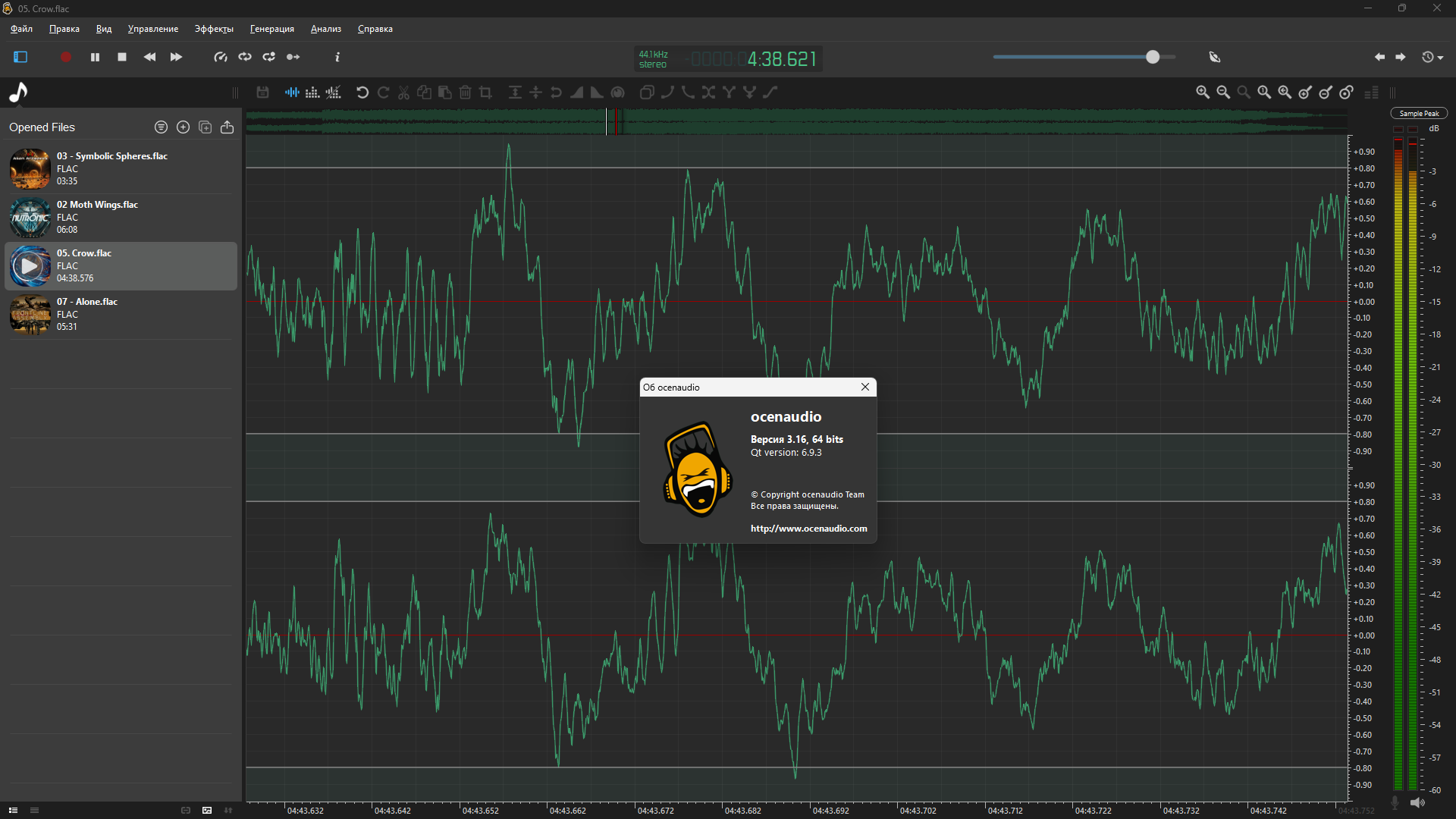 Ocenaudio — аудиоредактор, распространяемый авторами абсолютно бесплатно. Приложение имеет различные варианты сборок, поддерживающих работу в различных операционных системах (Windows, Mac OS X, Linux). Это невероятно простой способ вносить изменения в аудио треки. При наличии достаточно мощных функций, программа не вызовет осложнений при работе даже новичками. Однако и более опытные пользователи смогут оценить данное ПО.