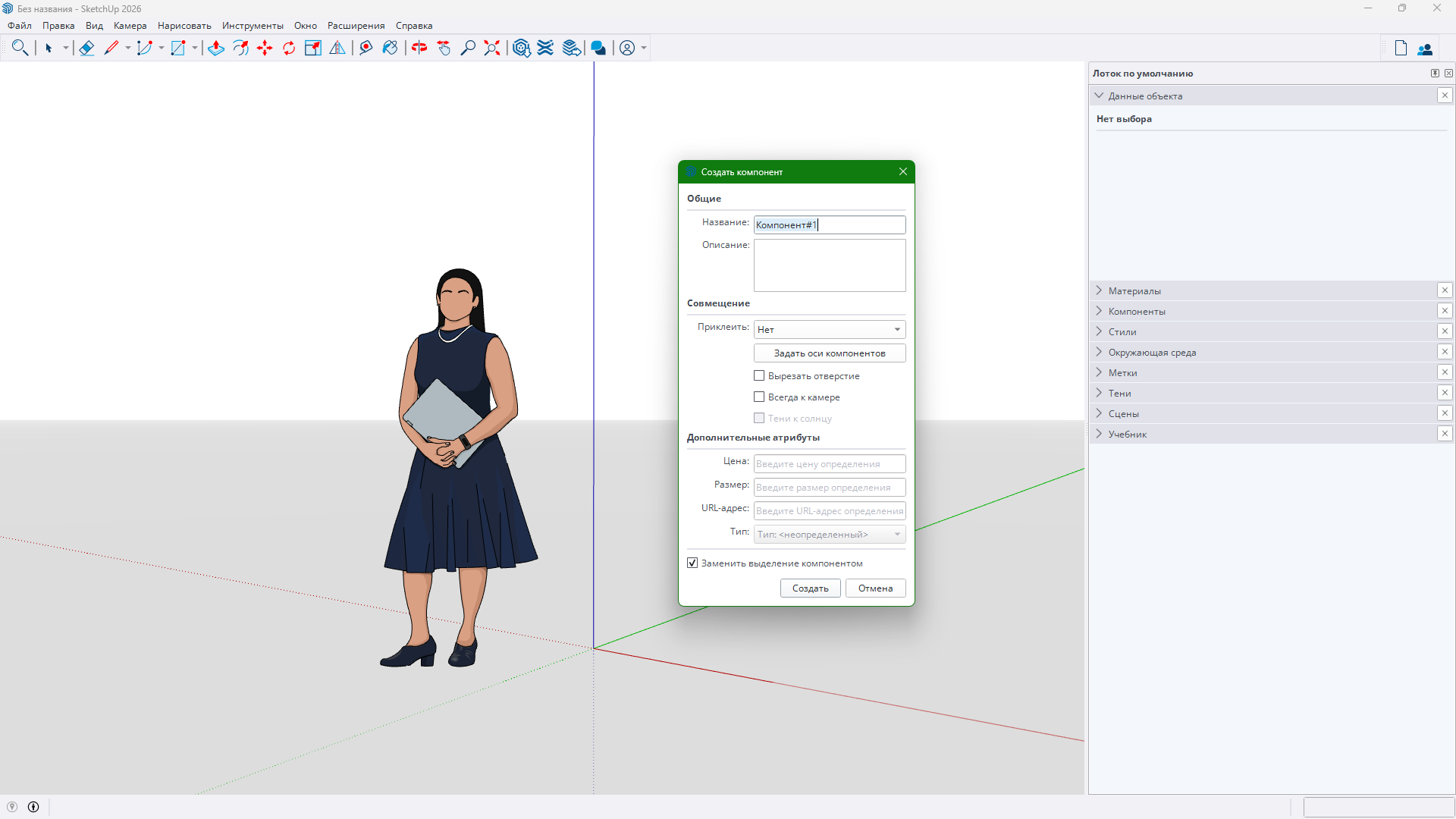 - Добавлять заготовленные компоненты, например деревья, автомобили, двери и окна, а также людей, либо создавать новые компоненты.