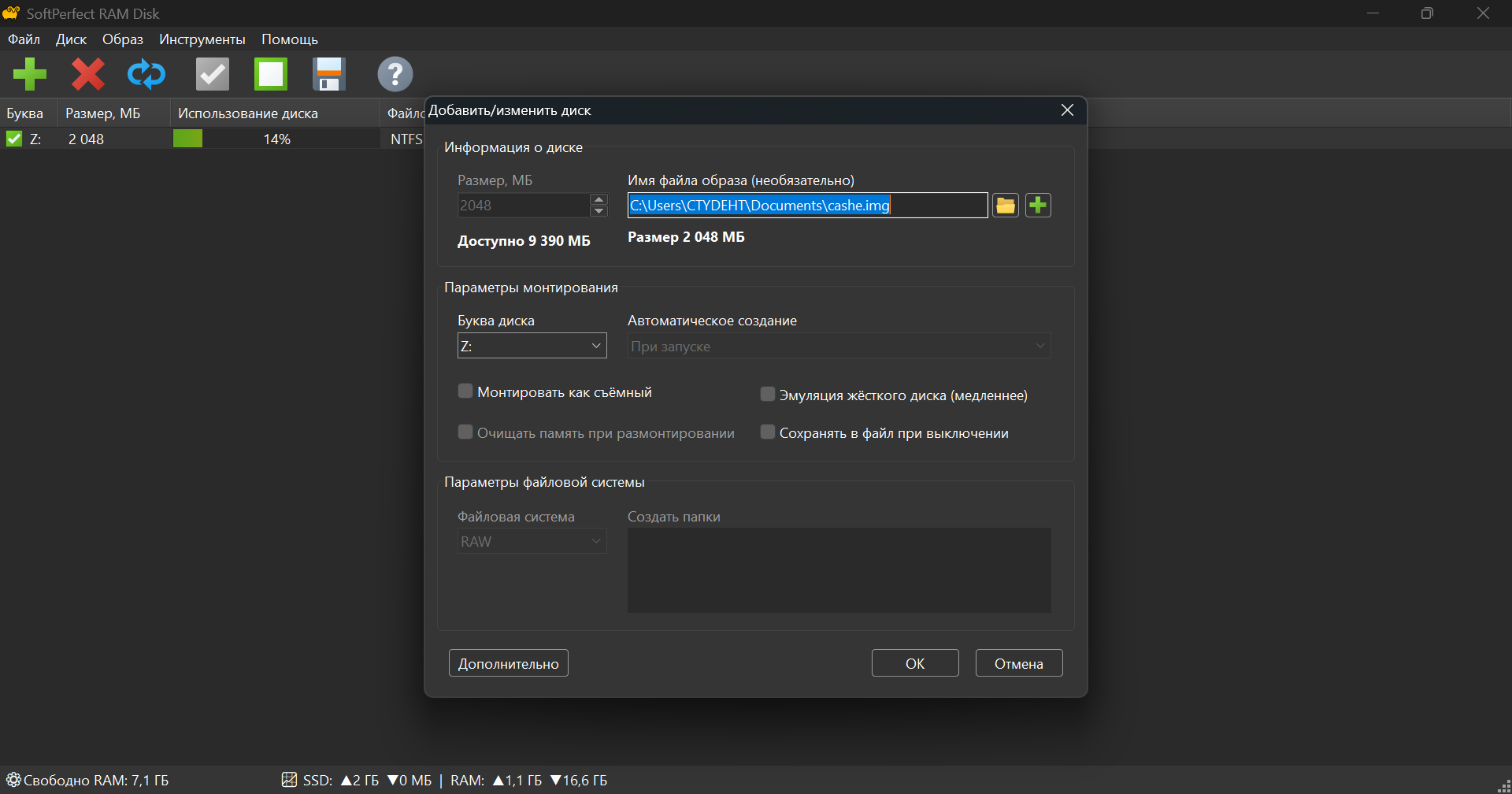 SoftPerfect RAM Disk - программа для создания виртуального диска в оперативной памяти. Так как память намного быстрее, чем физические жесткие диски, имеет смысл для достижения более высокой производительности хранить временные данные в быстродействующей оперативной памяти. Современные компьютеры оснащены большим количеством оперативной памяти, однако большую часть времени она не используется и может быть использована в качестве высокопроизводительной альтернативы медленным жестким дискам. RAM Disk позволяет создавать любое количество виртуальных дисков в оперативной памяти и ограничен только объемом свободной памяти.
